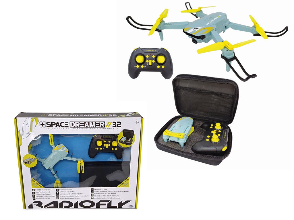 Il drone Radiofly Space Dreamer 32 è un dispositivo richiudibile, progettato per offrire un'esperienza di volo avanzata e versatile. Con una frequenza RC di 2.4 GHz, il drone ha dimensioni di 32 x 27 x 5,2 cm e viene fornito con una custodia porta drone per un trasporto facile e sicuro. Dispone di otto funzioni diverse, inclusi il fermoposizione, il decollo e l'atterraggio assistiti, garantendo un controllo preciso e stabile. Offre tre velocità di volo e la possibilità di eseguire flip a 360 gradi per aggiungere un tocco acrobatico. Il drone è dotato di batterie incluse, rendendolo pronto all'uso appena fuori dalla scatola.