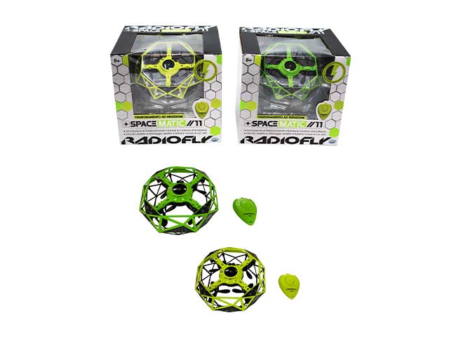 Radiofl y - spacematic //11. drone a induzione, 2 colori, 5 minuti di volo, scocca protettiva, funzione anticollisione, trasmettitore con funzione decollo e atterraggio assistito