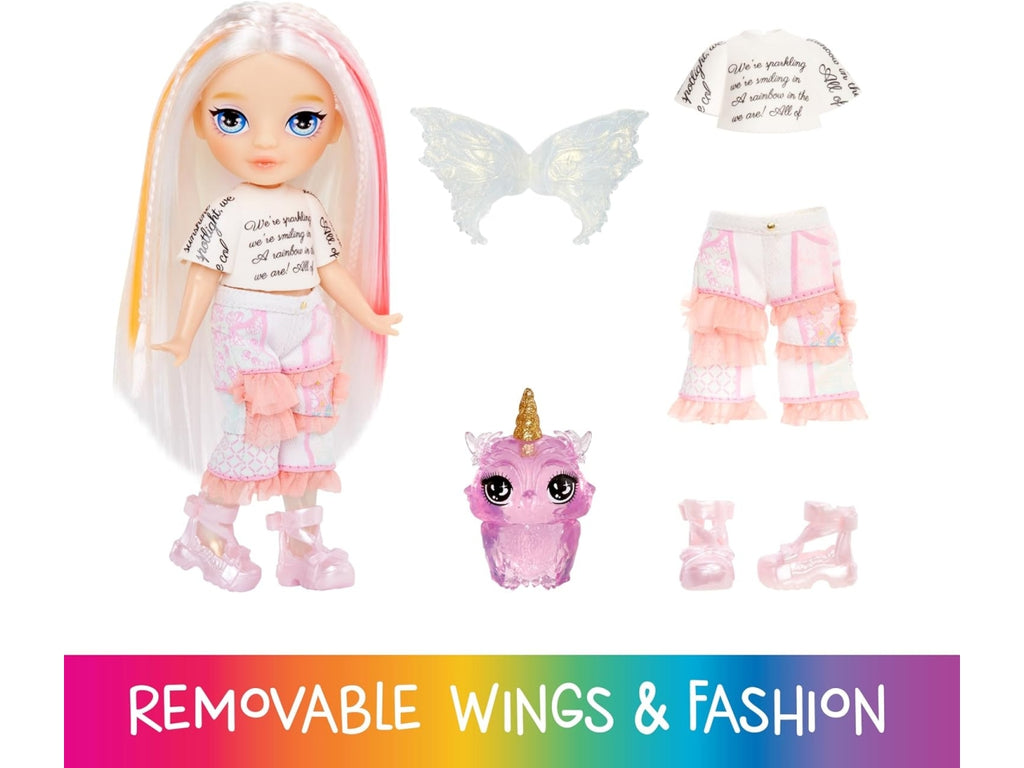 Le Littles di Rainbow High si uniscono alle loro sorelle maggiori in un mondo magico e hanno le ali. Queste adorabili creature hanno ali da fata magiche che sono intercambiabili con i loro animaletti.
