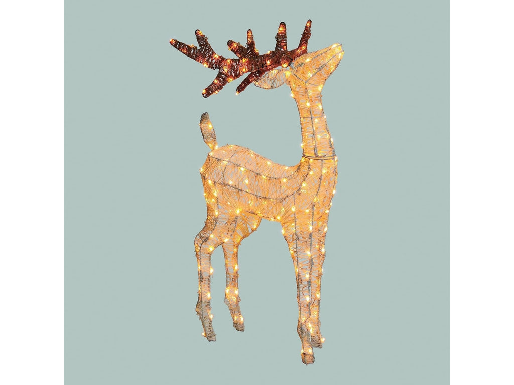 RENNA 3D H95CM SERIE LHC 200 LED TRADITIONAL Ø5MM, TELAIO METALLO VERNICIATO BIANCO, LUCE FISSA, LHC LIGHT CREAM & BROWN, TRASFORMATORE BASSA TENSIONE DI SICUREZZA CON TIMER ON-OFF 8-16 ORE DISINSERIBILE TRAMITE PULSANTE LUMINOSO, IP44 USO ESTERNO E INTERNO, CAVO ALIMENTAZIONE BIANCO 4M, DIMENSIONI H95CM, SCATOLA BIANCA CON ETICHETTA COLOR (XKC ART. LHC RN95-200-F).