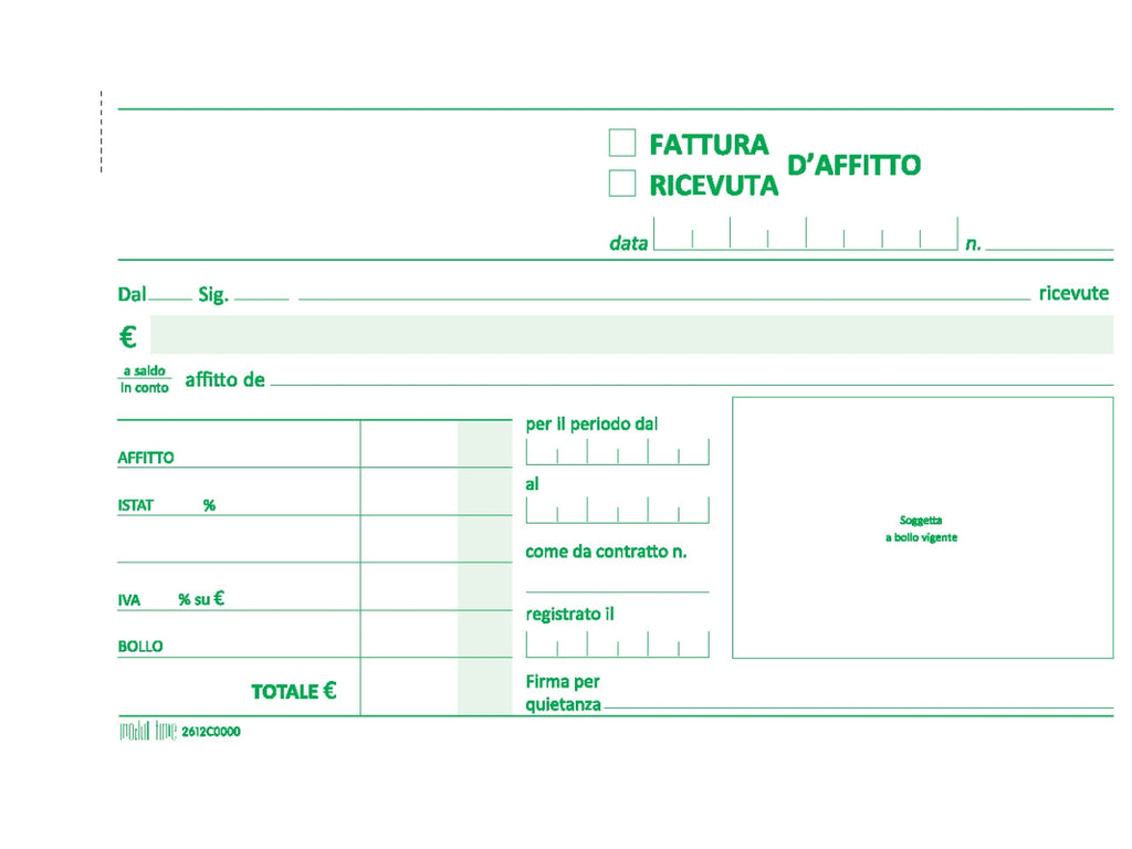Ricevuta d'affitto 50x2 copie autoricalcante 9,9x17cm