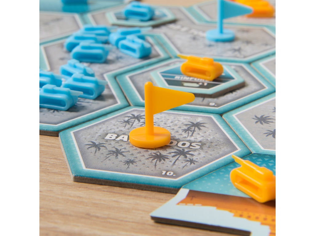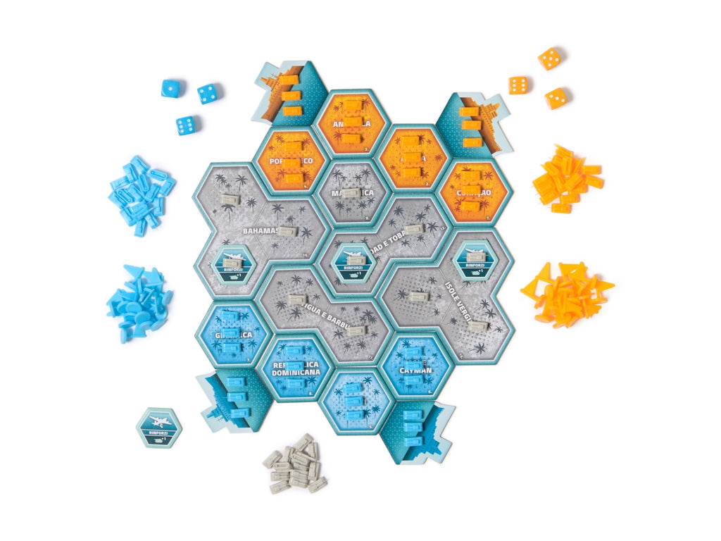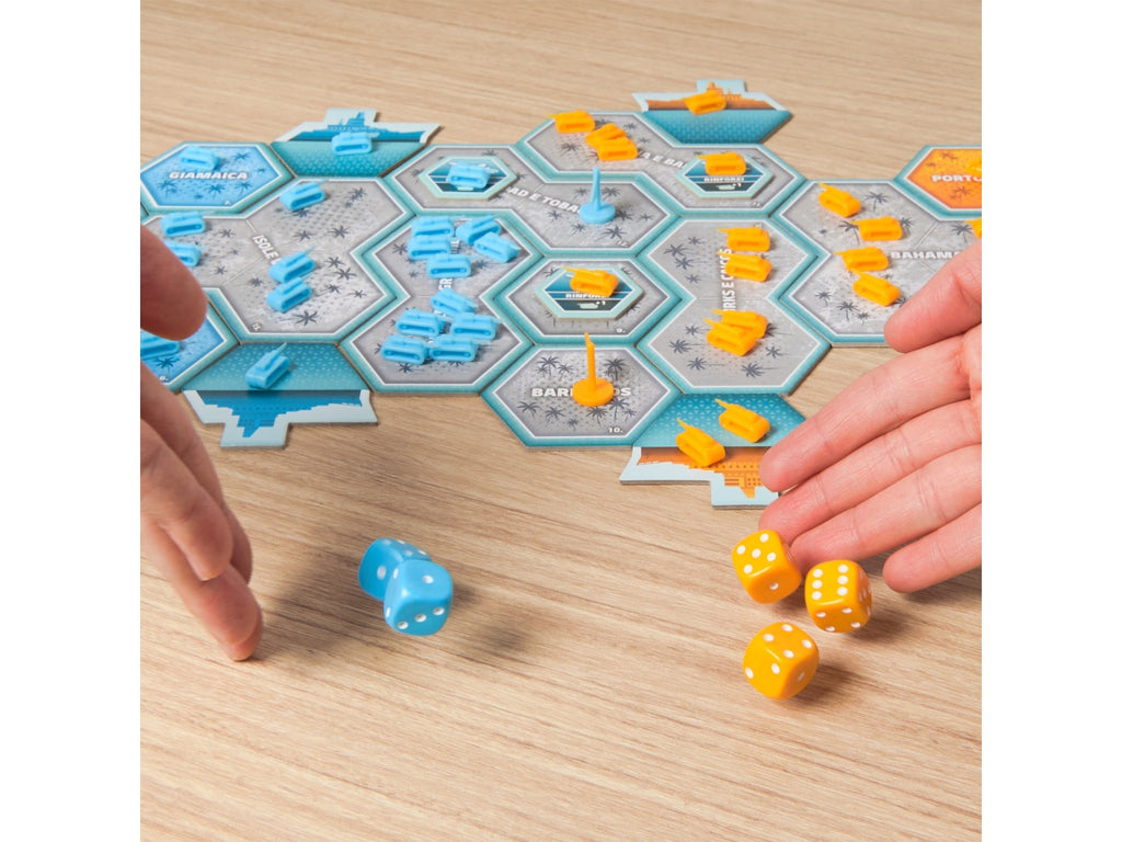 Preparati a salpare e percorrere rotte inedite con Risiko! Oceano. Scopri l'espansione Oceano, un'espansione appena creata con due modalità di gioco per l'edizione aggiornata di Risiko!, il gioco di conquista strategica di Editrice Giochi. Nella modalità per due giocatori, posiziona le armate e combatti tra gli atolli per raggiungere il tuo obiettivo. Usa i porti per conquistare altre rotte tra gli oceani e raggiungere il tuo primo obiettivo segreto. Collega il tabellone alla versione classica di Risiko per ampliare la mappa. L'espansione include altri obiettivi, colori diversi delle armate e regole inedite. Per 3-6 giocatori; tutte le persone da 10 anni in su adoreranno questo gioco da tavolo. Giocare è semplice e divertente. Scegli il colore delle tue armate. Distribuisci i rinforzi in modo strategico. Poi attacca e occupa altri territori per raggiungere il tuo obiettivo segreto. Gioca con la regola del TIME ATTACK per partite rapide.