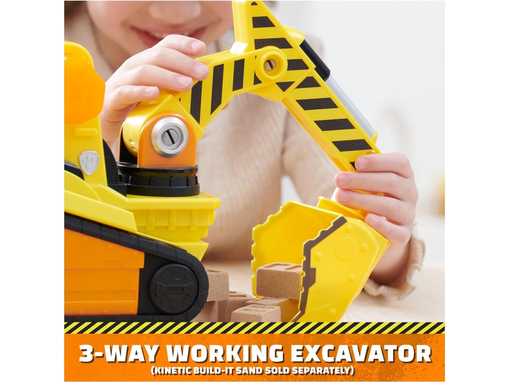 Unisciti al tuo cucciolo PAW Patrol preferito, Rubble, con il suo Bark Yard Deluxe Bulldozer. Questo giocattolo da costruzione PAW Patrol è dotato di ruote funzionanti, due attrezzi articolati e luci e suoni entusiasmanti. I fan della serie Rubble & Crew non potranno lasciarselo sfuggire. Questo entusiasmante set di action figure e veicolo include il personaggio di Rubble alto oltre 5 cm che indossa l'uniforme ufficiale Rubble & Crew, proprio come nella serie. Quando è il momento di entrare in azione, posiziona Rubble al posto di guida e spingilo verso il basso per attivare luci ed effetti sonori caratteristici della serie. Usa l'escavatore articolato per iniziare a scavare, poi sposta la terra con la ruspa mobile, proprio come fa Rubble. Per giocare in altri modi, scopri tutti i camion giocattolo da cantiere Rubble & Crew, i personaggi e i set di gioco con la sabbia Kinetic Sand Build-It, insieme ai set di gioco Bark Yard Crane Tower e Rubble's Workshop Playset, per creare il tuo universo di costruzioni attraverso il gioco di finzione (ciascuno in vendita separatamente). Ricrea le emozioni della serie Rubble & Crew con il Rubble's Bark Yard Deluxe Bulldozer.
