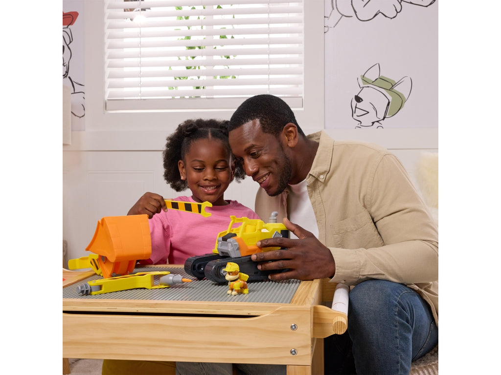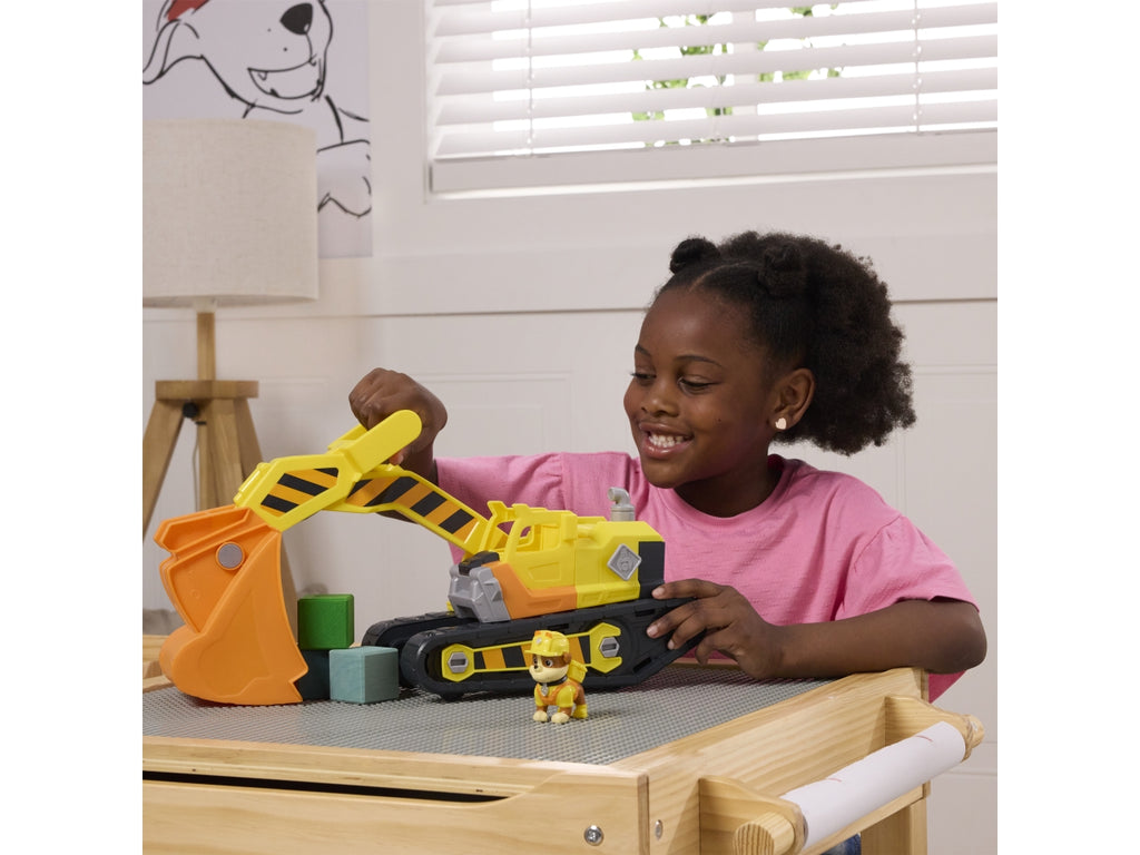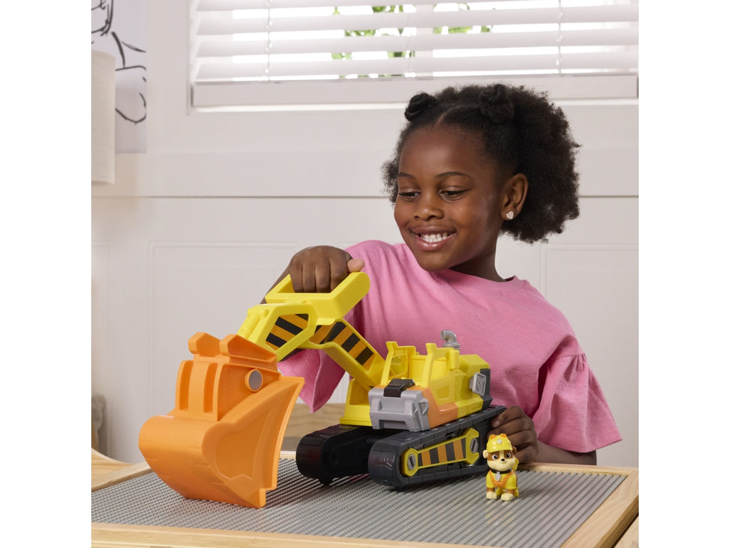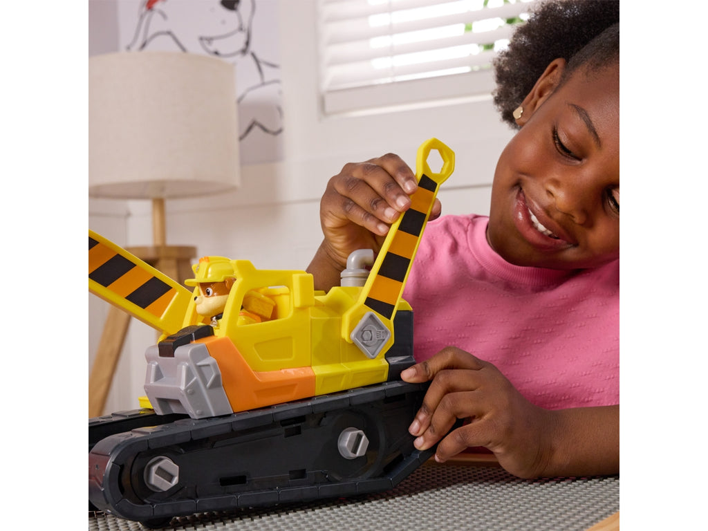 Arriva il veicolo Bulldozer attrezzato leggendario di Rubble, con attrezzi edili giocattolo incorporati per un entusiasmante gioco manuale. Questo fantastico giocattolo dei cuccioli consente ai bambini di giocare con la creatività con un action figure di Rubble da 6,3 cm e il suo strepitoso bulldozer giocattolo PAW Patrol, dotato di quattro attrezzi rimovibili (pala, cacciavite, chiave inglese e saldatrice) facili da agganciare e rimuovere, che permettono ai bambini di smontare e ricostruire il veicolo di Rubble o di creare avventure da cantiere personali, come scavare in una sabbiera o ricostruire il bulldozer con i giocattoli PAW Patrol. La pala anteriore si trasforma in saldatrice e attrezzo per scavare, il tubo di scappamento diventa un pratico cacciavite e il pannello laterale si stacca rivelando una chiave inglese: è un giocattolo divertente e interattivo per l'apprendimento. Questi giocattoli sensoriali stimolanti dei cuccioli sono strepitosi per compleanni, il Natale o qualsiasi occasione all'insegna dell'avventura. I bambini possono creare storie eroiche personali insieme a Rubble e al resto della squadra per risolvere la situazione. Rivivi i momenti amati delle stagioni di Rubble & Crew, dal fantastico mondo di PAW Patrol, e preparati a creare avventure completamente nuove in cantiere con i peluche, le action figure, i giocattoli per le costruzioni e i veicoli giocattolo Rubble & Crew, per ore di avventure ispirate alla serie.