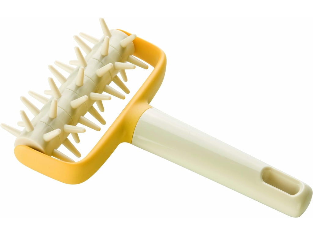 II rullo bucasfoglia è utile per forare qualsiasi tipo di sfoglia e per evitare che si formino bolle e rigonfiamenti nellâimpasto così da ottenere una cottura maggiormente uniforme.