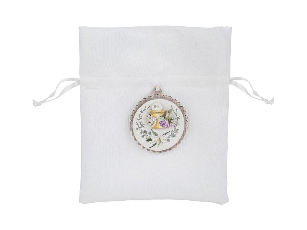 Sacchetto bianco con applicazione comunione 12x13cm