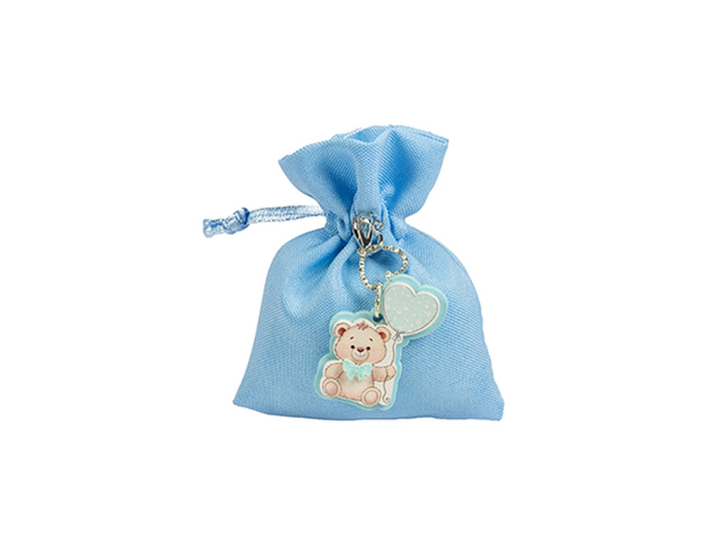 Sacchetto portaconfetti con applicazione ad orsetto celeste