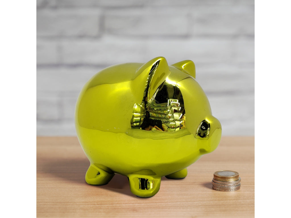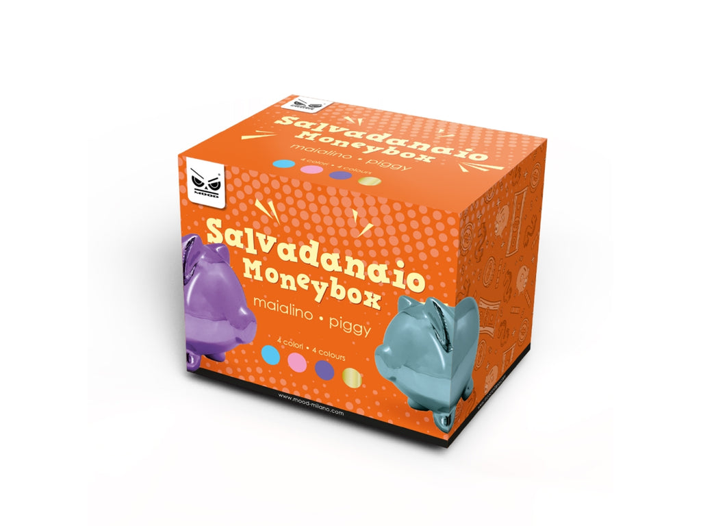 Salvadanaio in Ceramica con apertura sul fondo. In scatola singola.