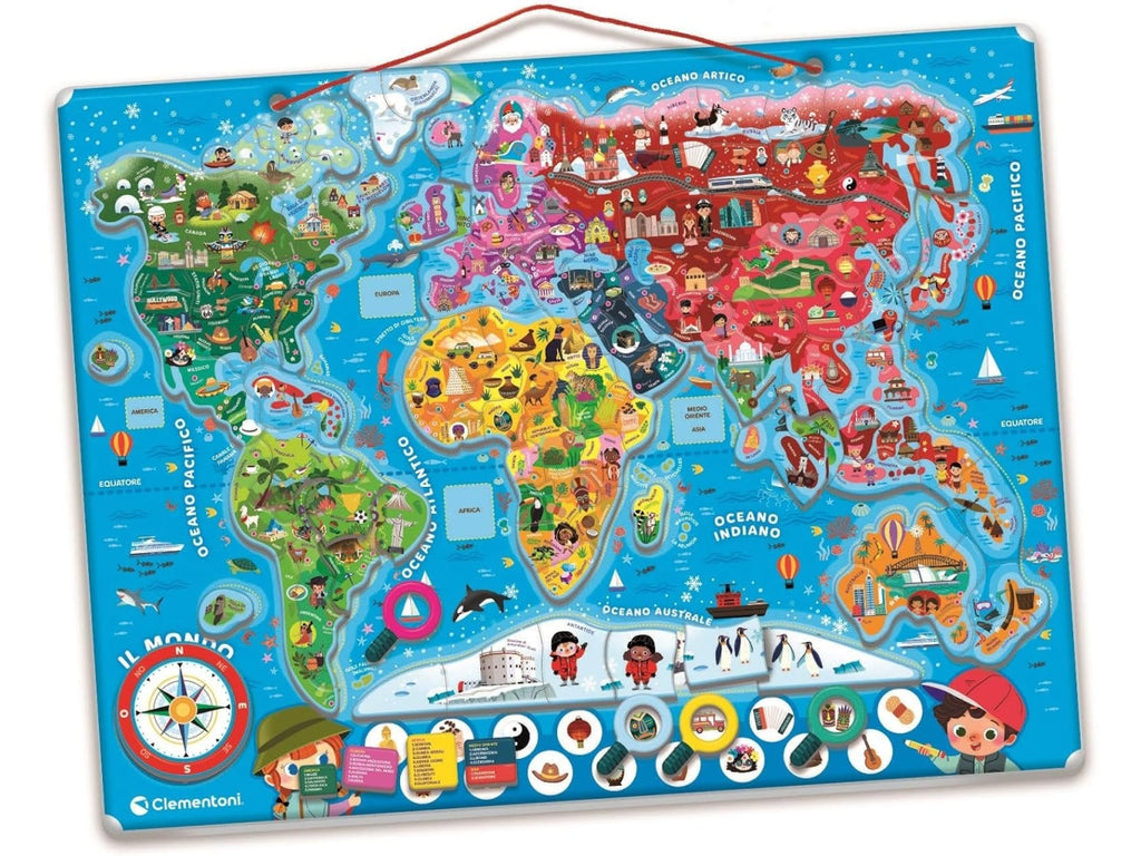 Un puzzle magnetico per scoprire la geografia e gli animali del mondo, un gioco educativo con tante attività per guidare nell'apprendimento, progettato per stimolare l'interesse dei più piccoli per la scoperta