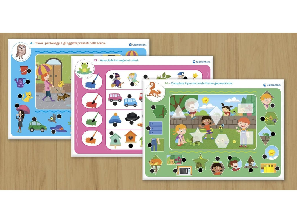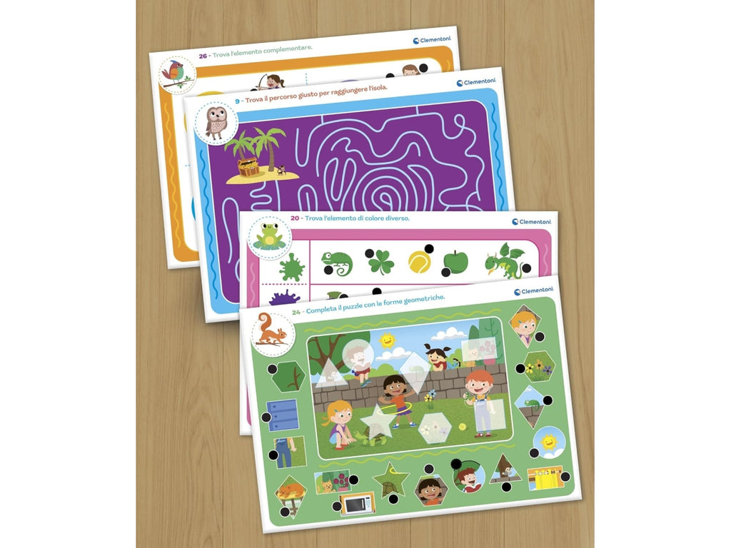 Le tessere a incastro e le schede propongono giochi di associazione, logica e memoria, incoraggiando la concentrazione, la comprensione e la capacità di risolvere problemi in maniera autonoma e creativa.