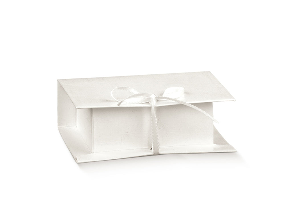 Scatola in cartoncino teso per confezionare confetti, piccoli oggetti. e' provvista di fori che permettono la legatura con nastro.