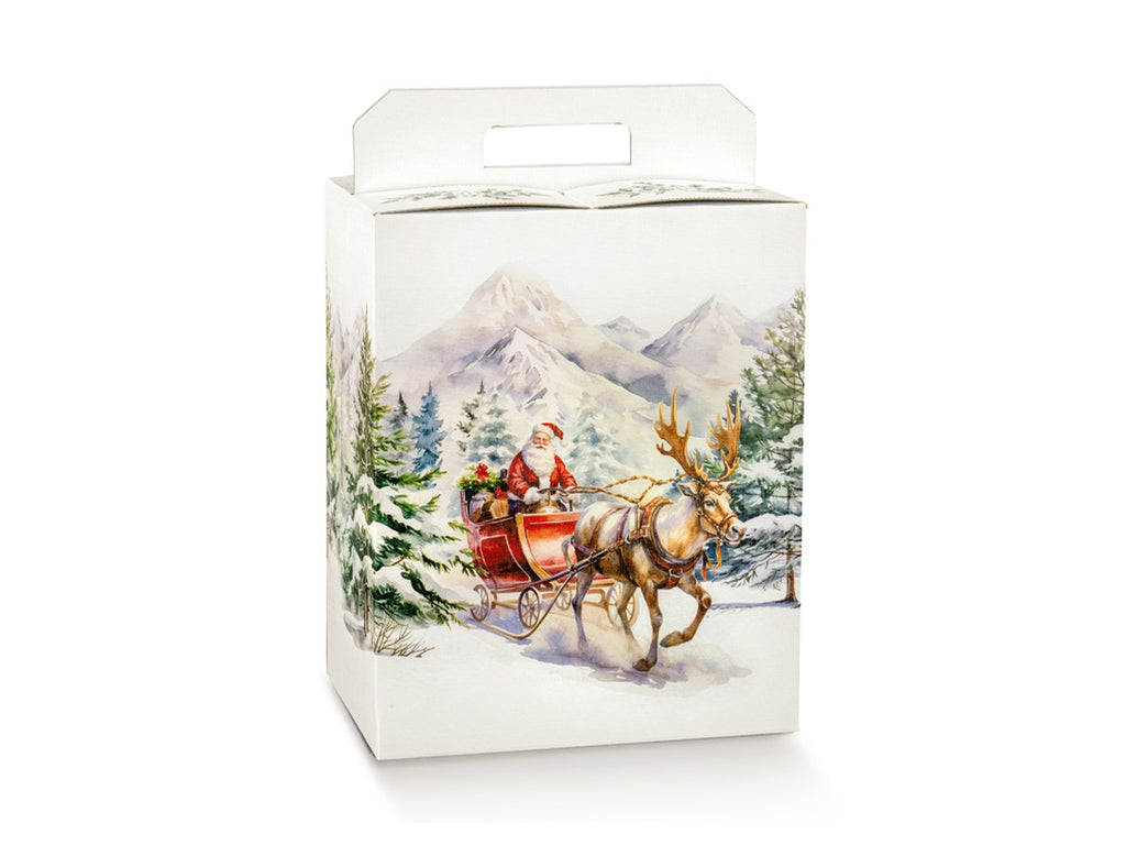Scatola in cartone accoppiato con maniglia per confezionare un panettone da 100-750gr/1kg e una bottiglia.