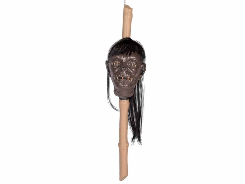 Scettro horror bastone in plastica insanguinato con testa cucita