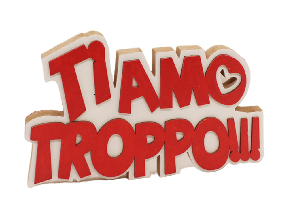 Scritta in legno ti amo troppo 23x10cm