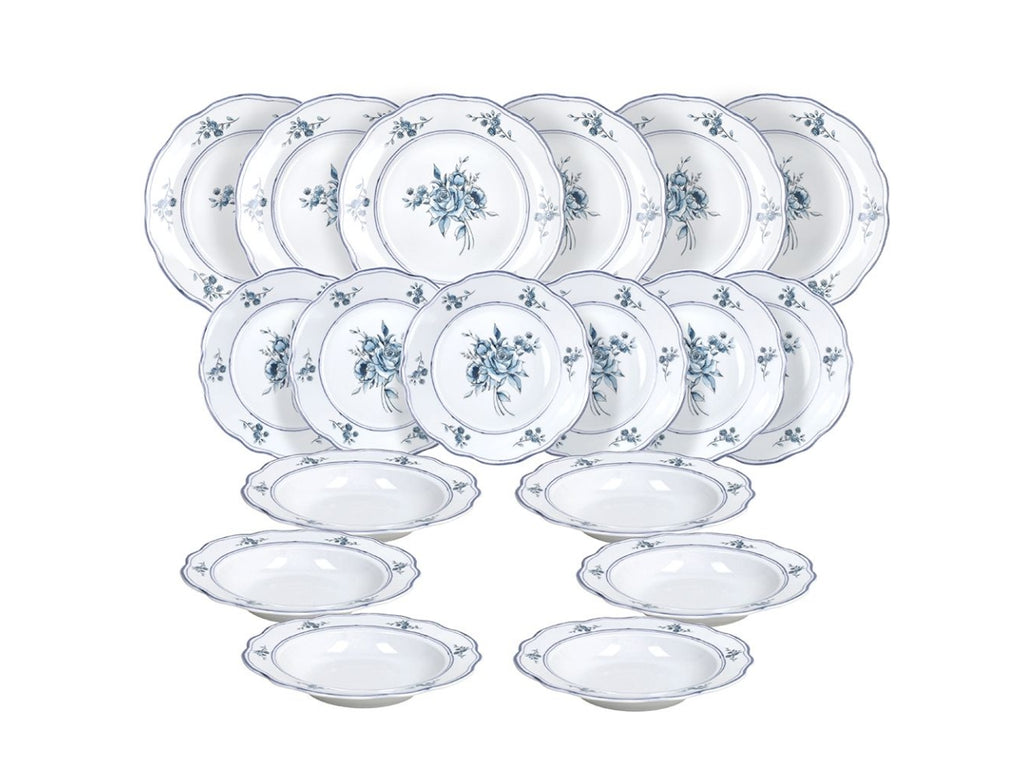ll servizio piatti Heritage Florals da 18 pezzi unisce stile classico e funzionalità moderna, offrendo una soluzione ideale per chi ama apparecchiare con gusto in ogni occasione. Realizzato in porcellana e decorato con un delicato motivo floreale nei toni del blu, aggiunge un tocco di eleganza senza tempo alla tavola. La composizione comprende piatti piani, fondi e da dessert, pensati per accompagnare ogni portata con armonia e coerenza estetica. Resistente all’uso quotidiano, questo servizio è adatto al lavaggio in lavastoviglie e all’utilizzo in forno a microonde, garantendo praticità senza rinunciare alla cura dei dettagli. Il servizio piatti 18 pezzi Heritage Florals è la scelta ideale per chi desidera un servizio versatile, raffinato e capace di valorizzare ogni momento a tavola, dal pranzo quotidiano alla cena con ospiti.