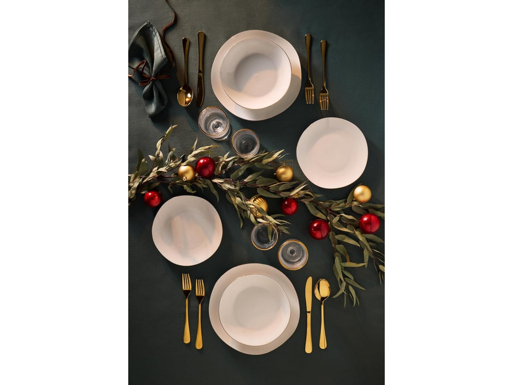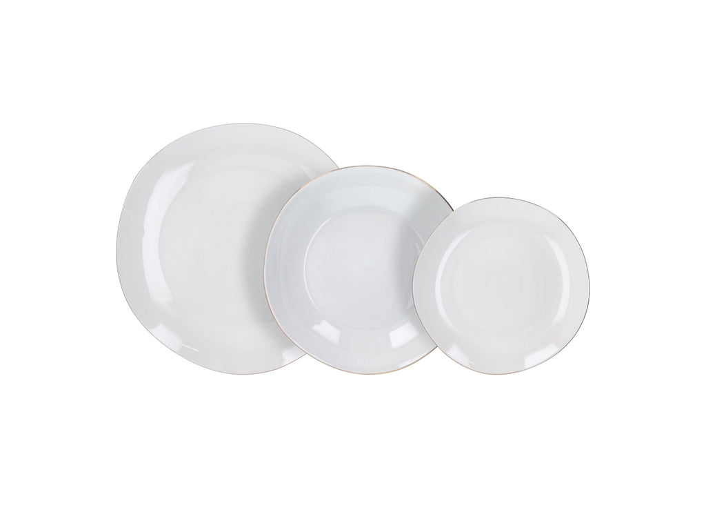 Il set include 18 piatti suddivisi in 6 piatti piani, 6 piatti fondi e 6 piatti da dessert, perfetto per apparecchiare la tavola con eleganza e praticità.