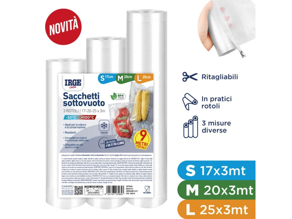 Set sacchi sottovuoto 3 pz17x3m 20x3mt 25x3mt