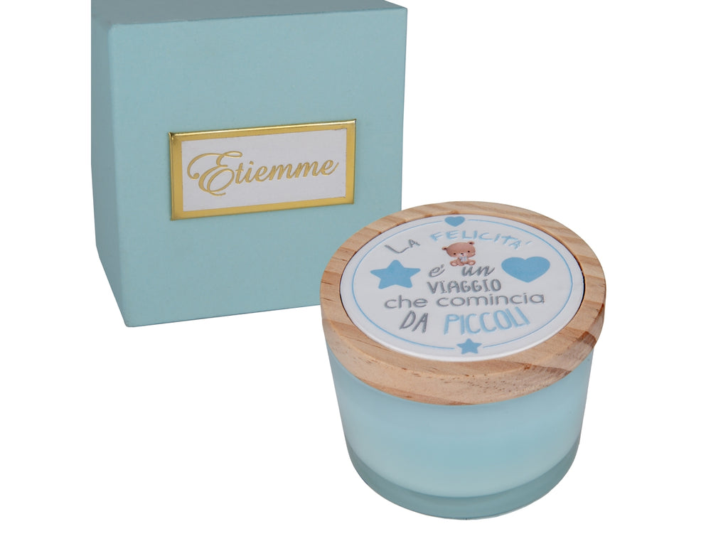 Sfavilla candela profumata con cofanetto in vetro 7,5xh.6cm celeste