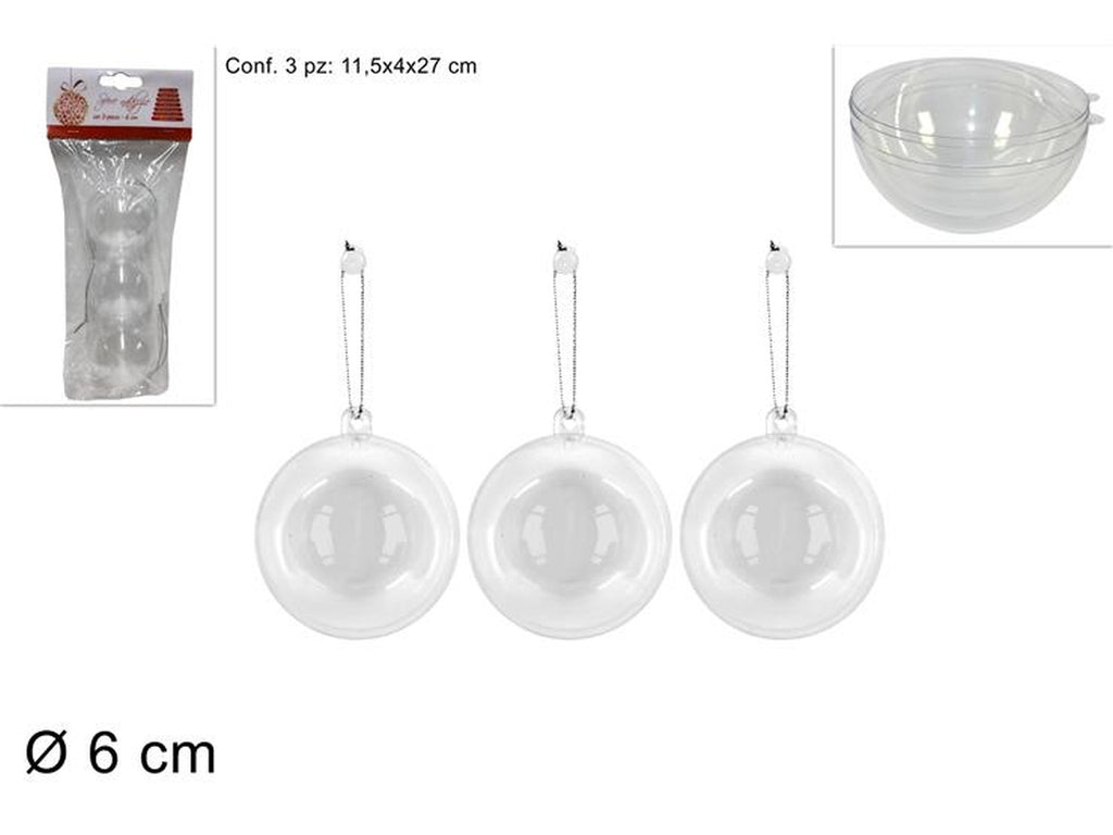 Sfera plastica trasparente 6cm in confezione da 3 pezzi