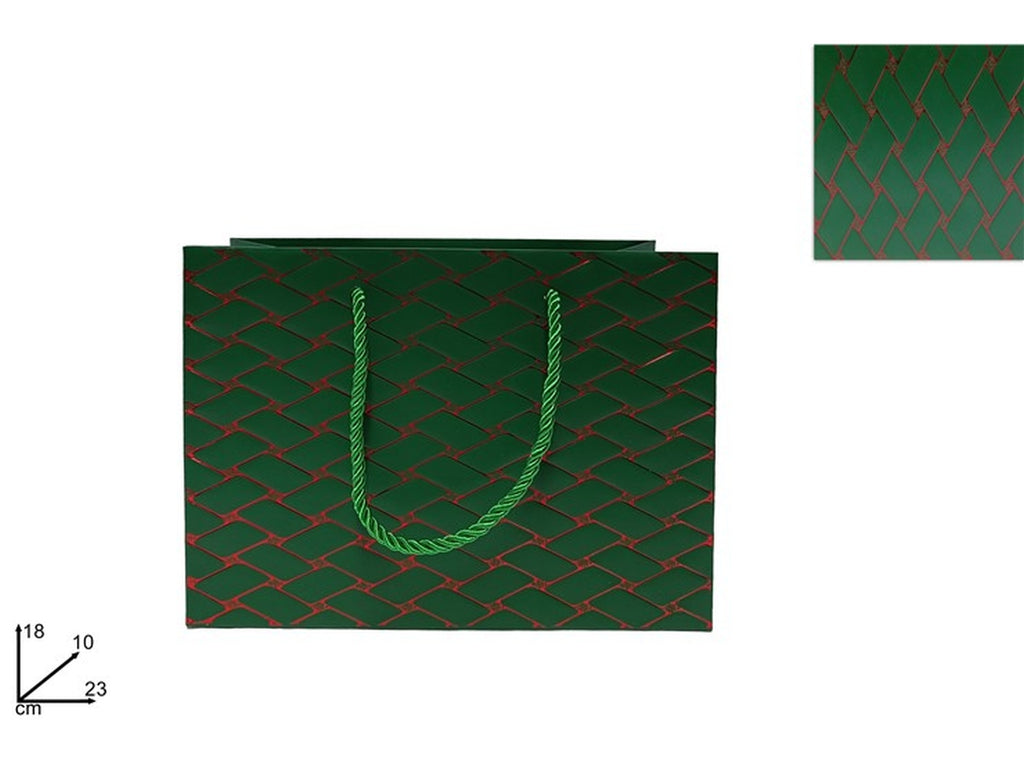 Shopper 23x18x10cm effetto trapunta verde rosso