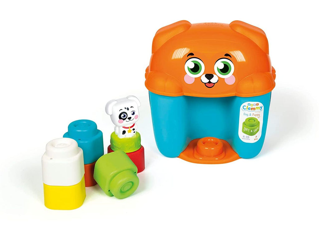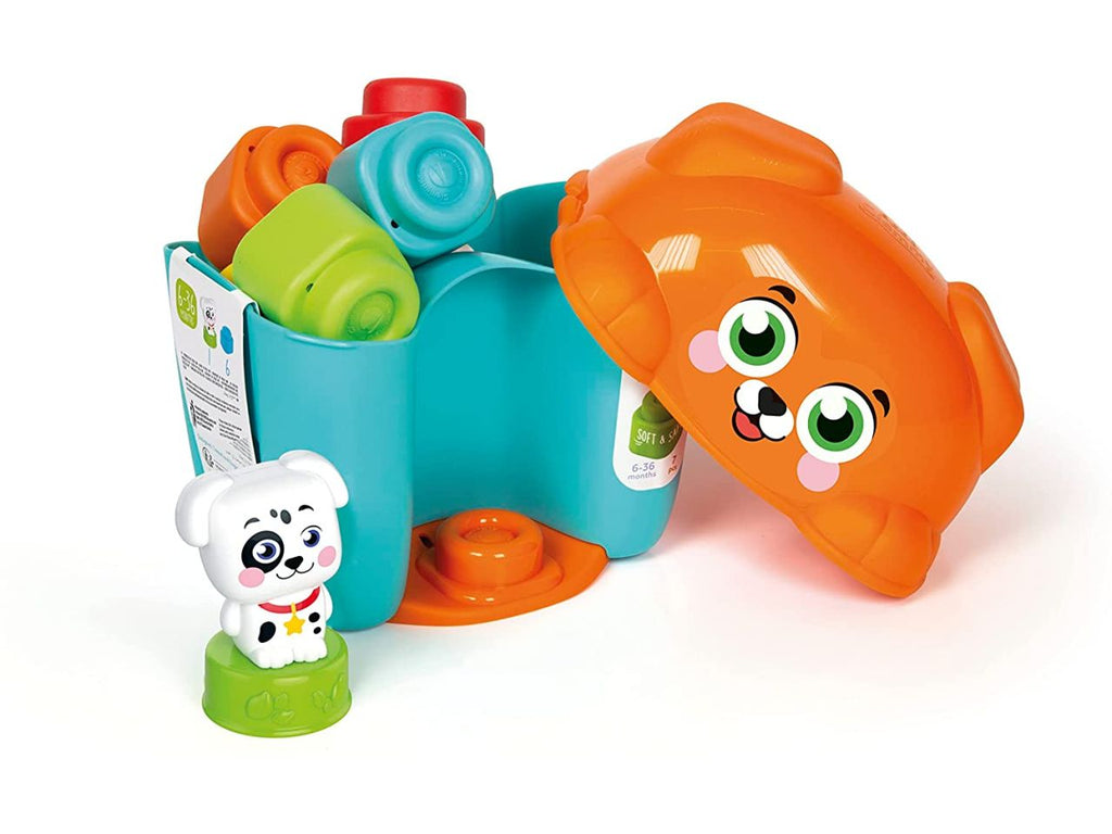 Clementoni- soft clemmy-dog & puppy bucket-secchiello con mattoncini morbidi, set costruzioni prima infanzia bambini 6 mesi-made in italy, multicolore.clementoni secchiello: un simpatico secchiello a forma di cagnolino, che contiene 6 morbidi mattoncini clemmy, pensati per far giocare i più piccoli in assoluta sicurezzacon personaggio: incluso c'è un personaggio clemmy: un tenero cucciolo, con cui inventare storie fantastichesviluppo multisensoriale: i morbidi mattoncini clemmy sono ideali per l'esplorazione sensoriale, stimolano la manualità  e la coordinazione motoriacaratteristiche: i mattoncini sono lavabili in lavastovigliedettagli e target: 100% made in italy. set costruzioni morbide per bambini dai 6 mesi Un simpatico secchiello a forma di cagnolino, che contiene 6 morbidi mattoncini Clemmy, pensati per far giocare i più piccoli in assoluta sicurezza.