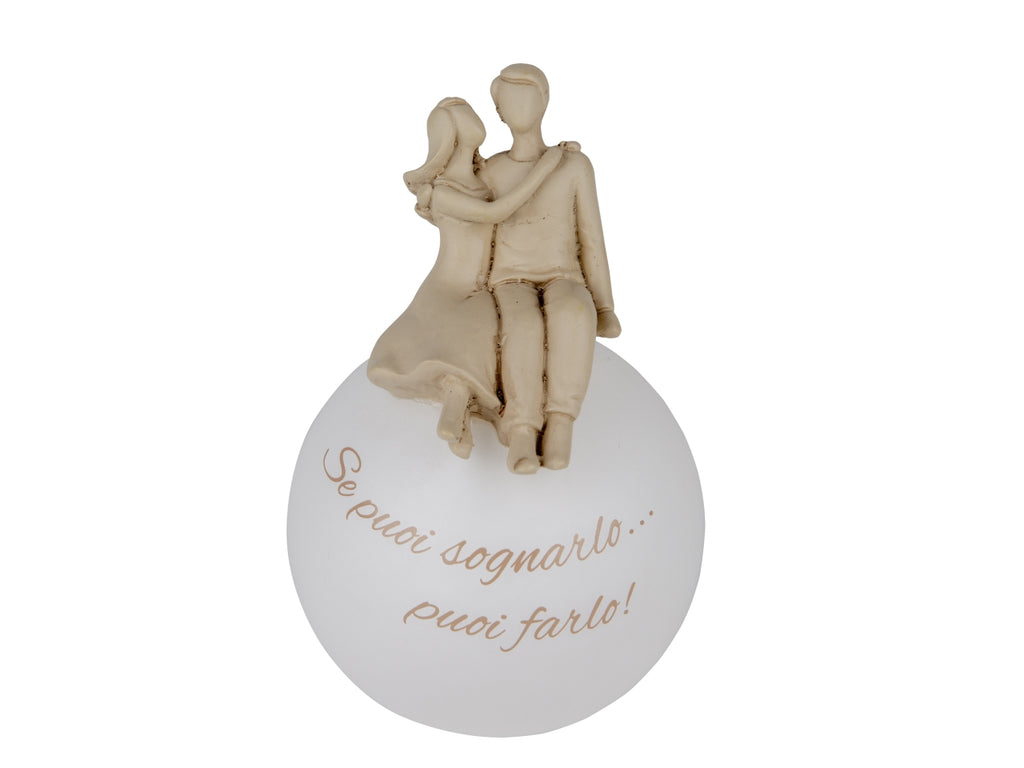 Sognando coppia su sfera in resina con led 12cm