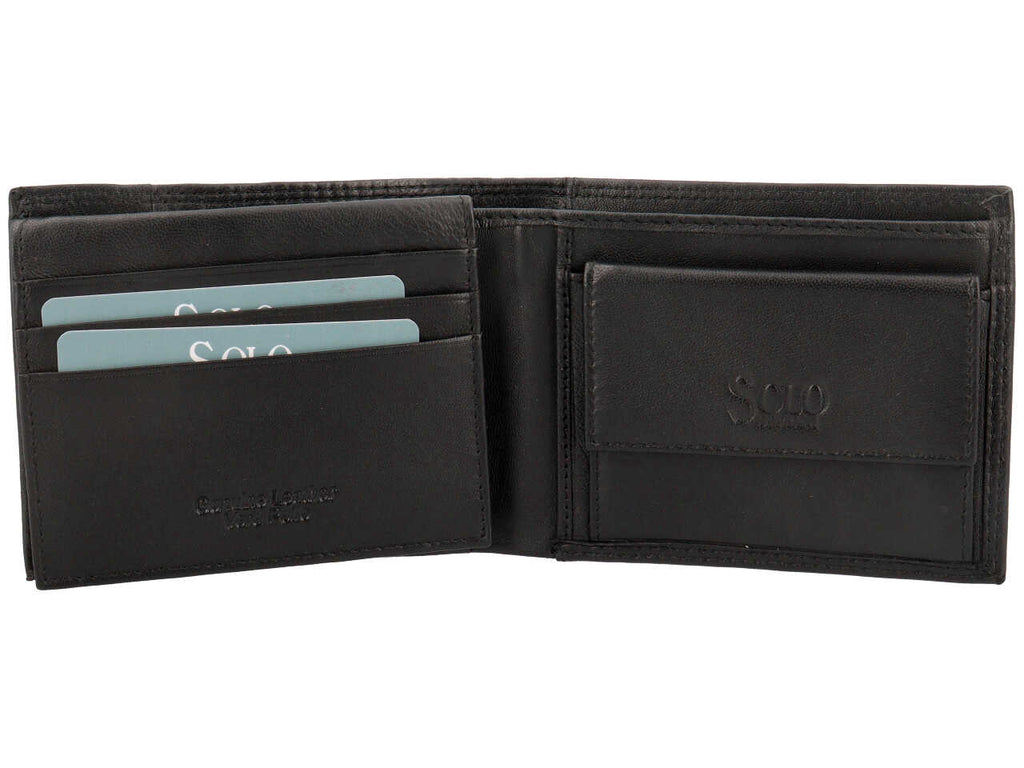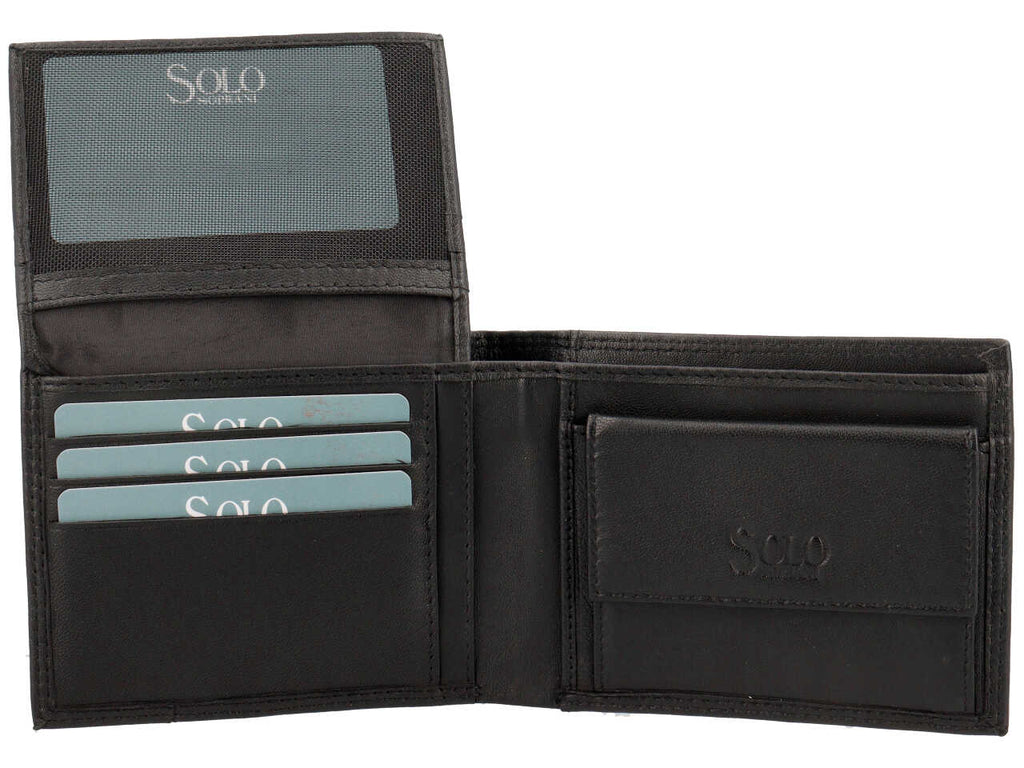 Portafoglio in morbida pelle con inserto monocolore. E' composto da 2 scomparti per banconote, 6 tasche portacarte, 3 tasche laterali, 1 pattina portadocumenti retinata e portamonete con chiusura a bottone.
