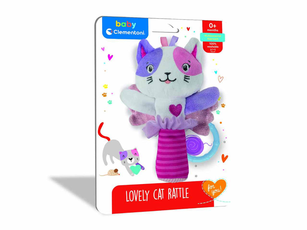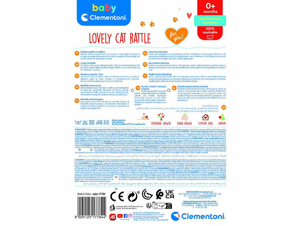 Clementoni- lovely cat rattle morbido peluche, gioco neonato, sonaglino passeggino, rafforza le capacità  motorie e sensoriali, 100% lavabile in lavatrice, multicolore Un morbido gattino sonaglio per intrattenere i più piccoli con elementi multisensoriali.