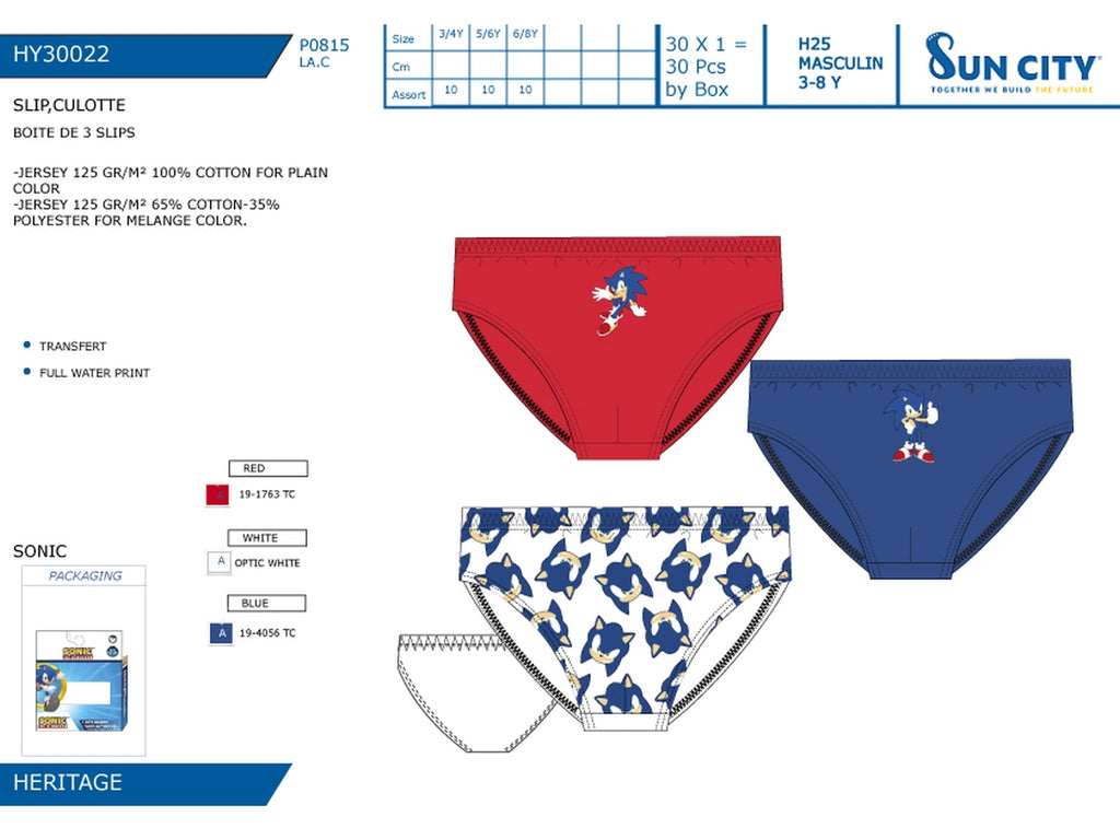Sonic slip dalla 3/4 alla 6/8 anni in box da 3 pezzi
