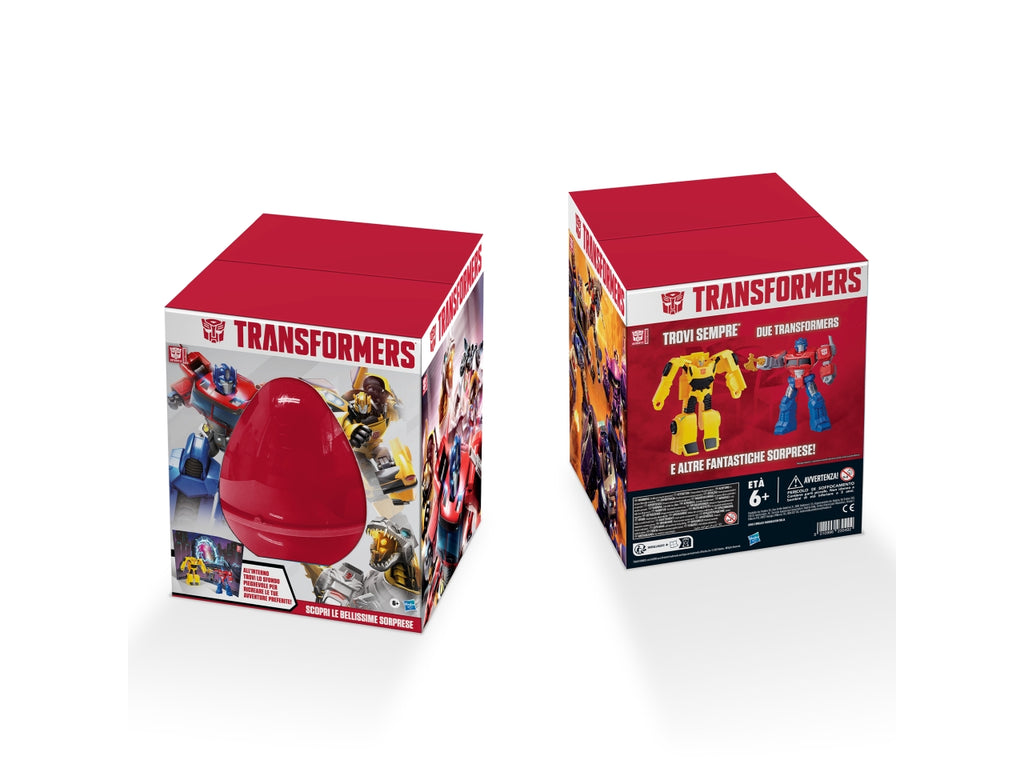 Durante il giorno di Pasqua, sconfiggi i temuti Decepticon e tutti i più malvagi nemici, grazie al Sorpresovo Transformers! Diventa un vero Autobot ed entra a far parte del team di Optimus Prime con i magnifici regali allinterno del Sorpresovo Transformers. Trovi sempre due action figure dei valorosi Transformers da portare sempre con te ma anche altre mitiche sorprese, per essere sempre al fianco dei tuoi robot preferiti. Diveriti a immaginare e a ricreare epiche battaglie tra Autobot contro Decepticon, grazie al fantastico Sorpresovo Transformers!