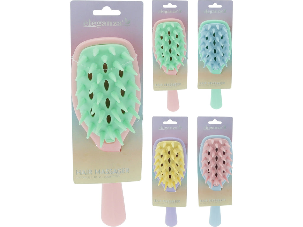 Spazzola per capelli, con funzione massaggiante abs con materiale in gomma, dimensioni: 240x76xh54mm, peso: 98 grammi, in 4 combinazioni di colori assortiti.