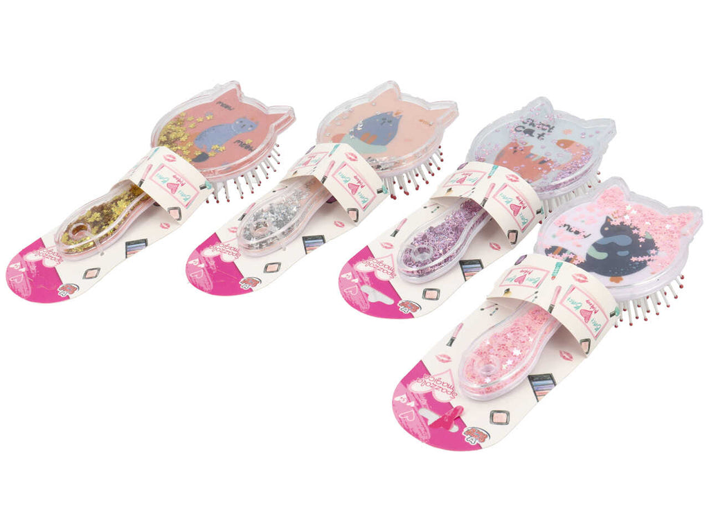 Spazzola per capelli con un design a tema gatto, pensata per un pubblico giovane e amante degli accessori originali. Caratterizzata da una struttura trasparente contenente glitter mobili che si muovono allâinterno della spazzola, offre un effetto visivo divertente e scintillante. Le setole morbide con punte arrotondate sono progettate per pettinare delicatamente i capelli senza irritare il cuoio capelluto. Disponibile in diverse varianti di colore e decorazione, ogni spazzola presenta un motivo unico con simpatici gattini e glitter colorati. Ã un accessorio ideale per bambine e ragazze che desiderano aggiungere un tocco giocoso e stiloso alla propria routine quotidiana.