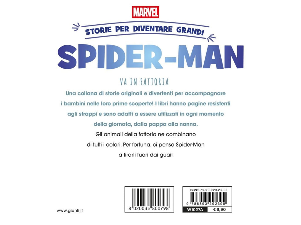 Gli animali della fattoria oggi sono in vena di combinare guai… ma non c'è nulla che Spider -Man non possa risolvere con le sue ragnatele. Libro particolarmente adatto ai piccoli lettori che, con l'aiuto dei genitori, possono scoprire come i loro personaggi Marvel preferiti affrontano semplici esperienze di vita quotidiana. Attraverso il meccanismo dell'immedesimazione, i bambini sono così stimolati a comprendere ciò che li circonda. Libro con pagine antistrappo e testi semplici. Età di lettura: da 2 anni.