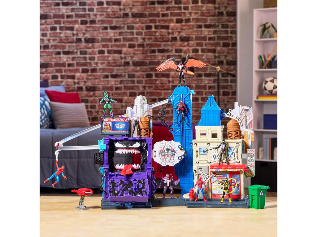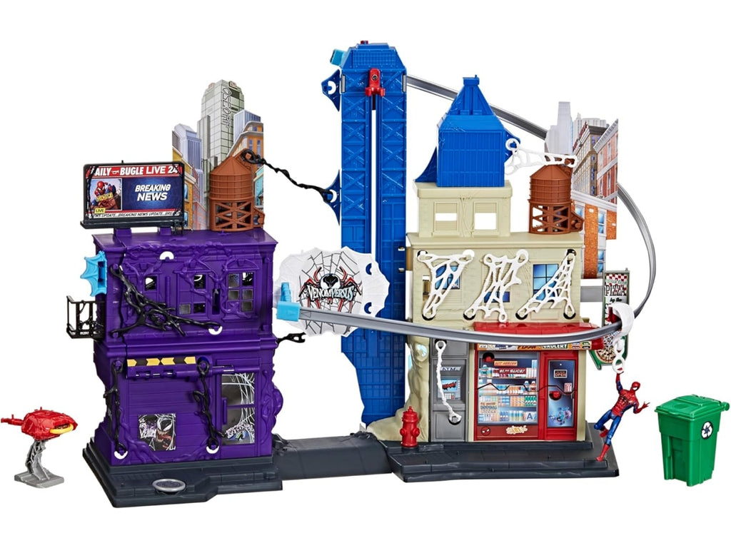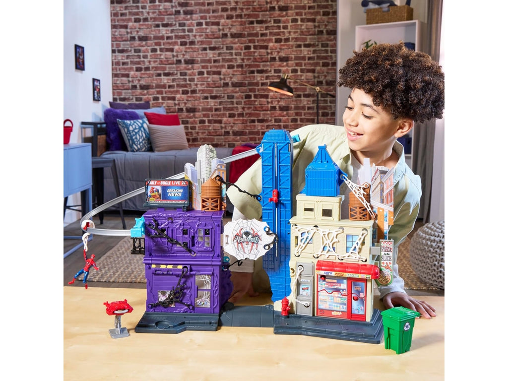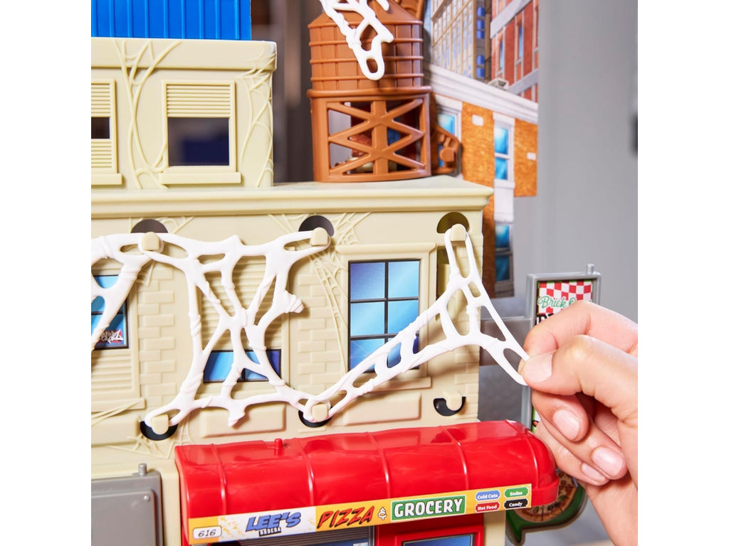 L'action figure collezionabile inclusa si collega alla parte anteriore della torre del playset, così i bambini e le bambine possono far arrampicare il loro giocattolo di Spidey fino a una posizione più elevata.