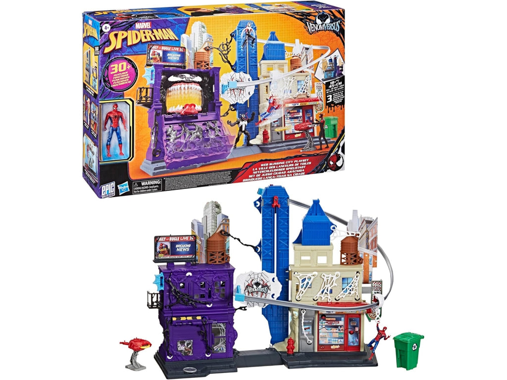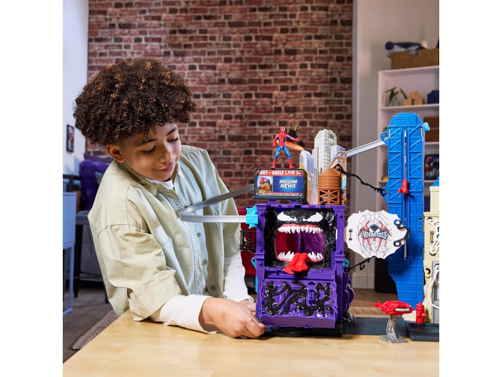 Abbassa la facciata anteriore di questo playset di Spidey per rivelare il minaccioso volto del simbionte Venom, in grado di masticare e divorare le action figure da 10 cm della Epic World of Action.