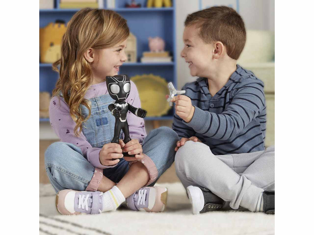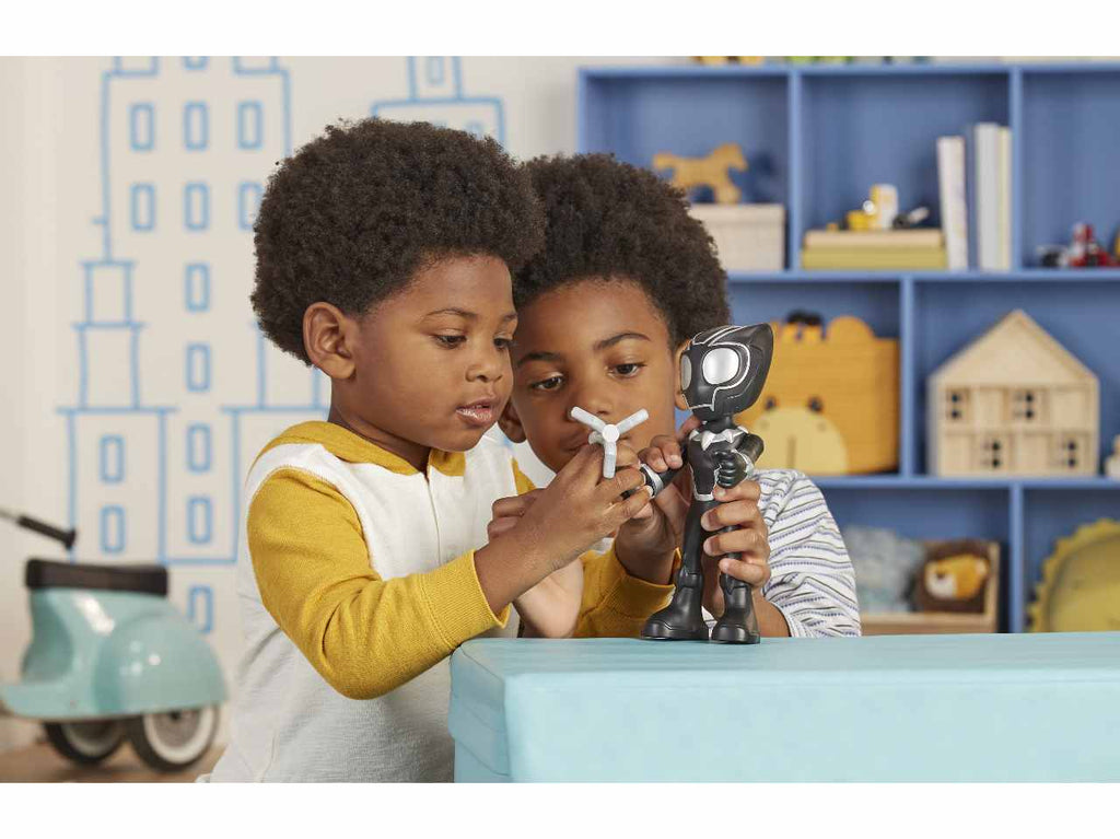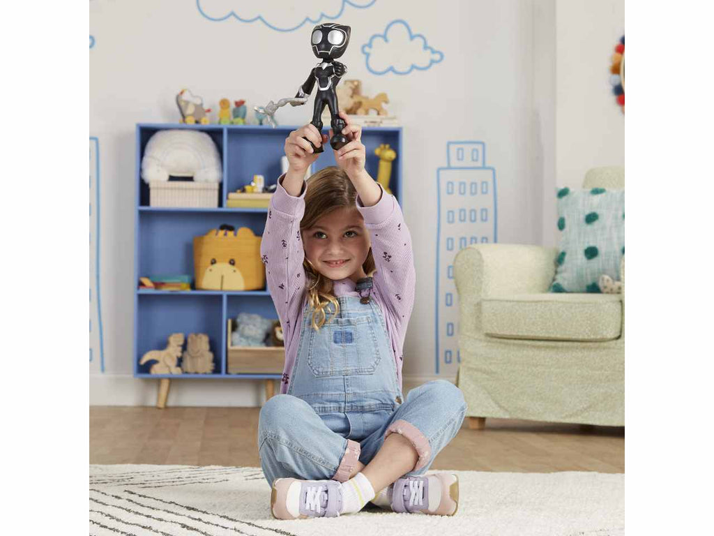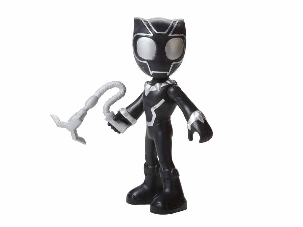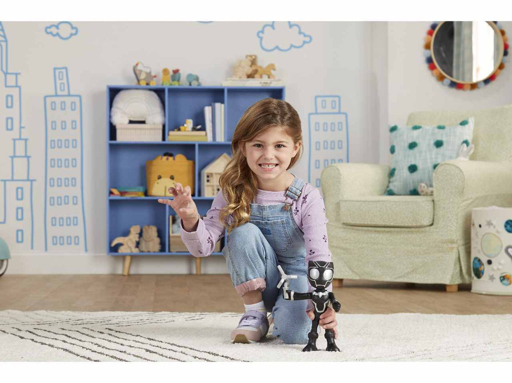 Black panther arriva in soccorso! con questa action figure di supersized black panther, ispirata alla serie spidey e i suoi fantastici amici, puoi sognare davvero in grande! con una notevole altezza di 22,5 cm, questa action figure del supereroe enorme e snodabile è grande, amichevole e pronta per giocare! i bambini e le bambine possono fissare l'accessorio rampino al polso della action figure di black panther e muoverle la testa e le braccia per farle assumere pose d'effetto, ricreando le loro scene preferite della serie animata marvel per età  prescolare su disney junior. cerca anche le action figure di supersized spidey e supersized miles morales: spider-man per vivere ancora più avventure insieme a spidey (ciascuna venduta separatamente, secondo disponibilità  ). questi giocattoli di spidey e i suoi fantastici amici sono perfetti da regalare a bambini e bambine dai 3 anni in su che adorano le avventure da supereroi. copyright marvel. tutti i marchi commerciali e i marchi registrati s ono appartengono ai rispettivi titolari. hasbro e tutti i termini correlati sono marchi commerciali di hasbro.