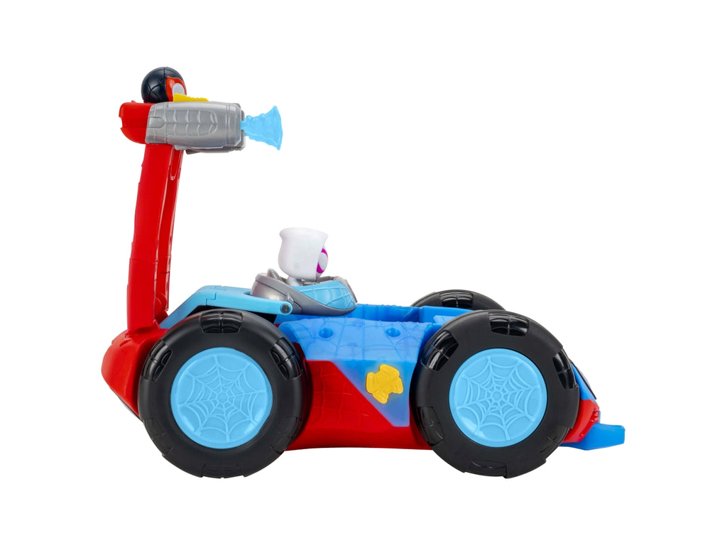 Direttamente dalla serie Spidey e i suoi fantastici amici, un veicolo pronto a sorprendere con la sua azione di trasformazione! Basta premere un pulsante per attivare luci e suoni, mentre il veicolo si ribalta e si trasforma per entrare in modalità combattimento. Include anche dardi a forma di ragnatela per un’esperienza di gioco ancora più interattiva.