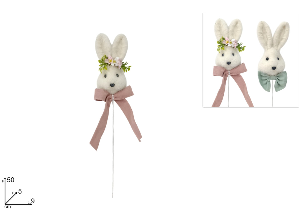 Spillone viso coniglio in pelliccia 50cm con fiocco in 2 assortimenti
