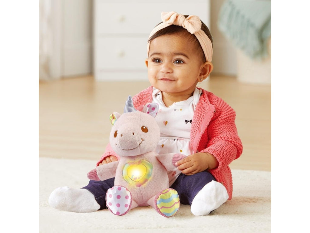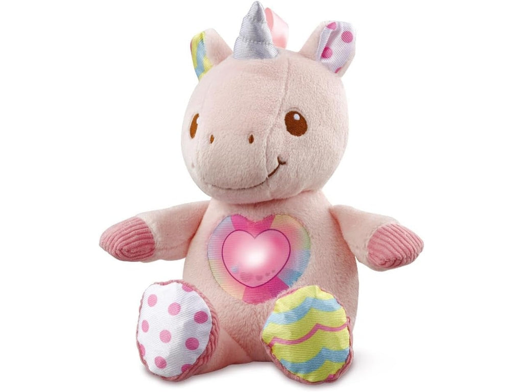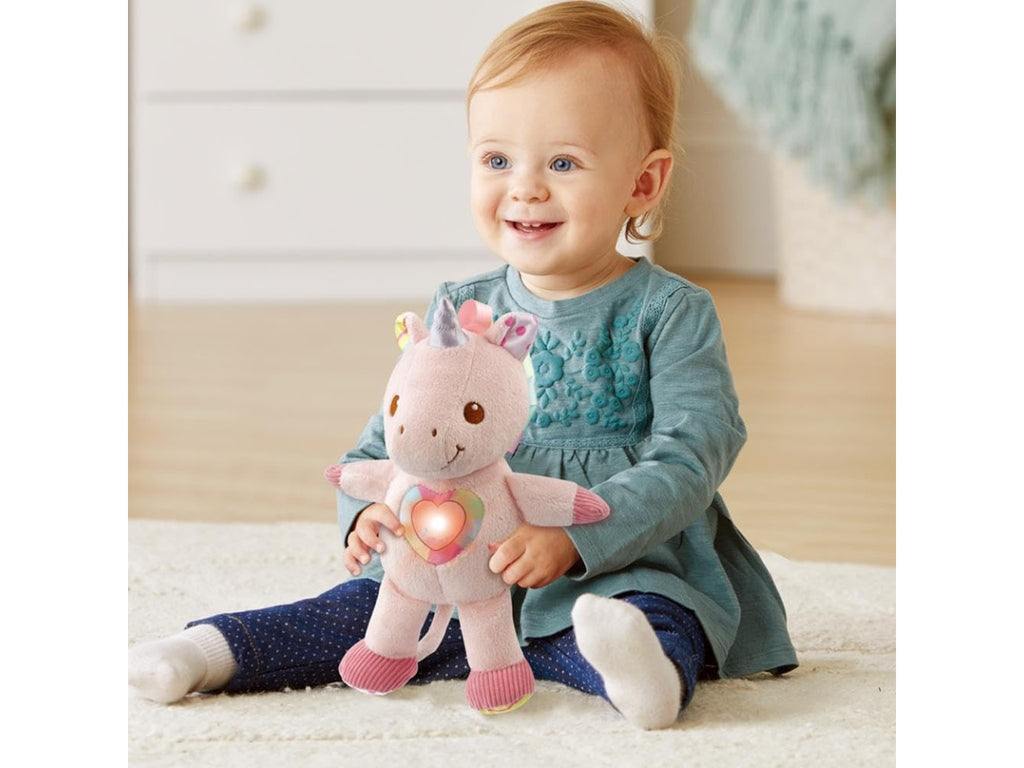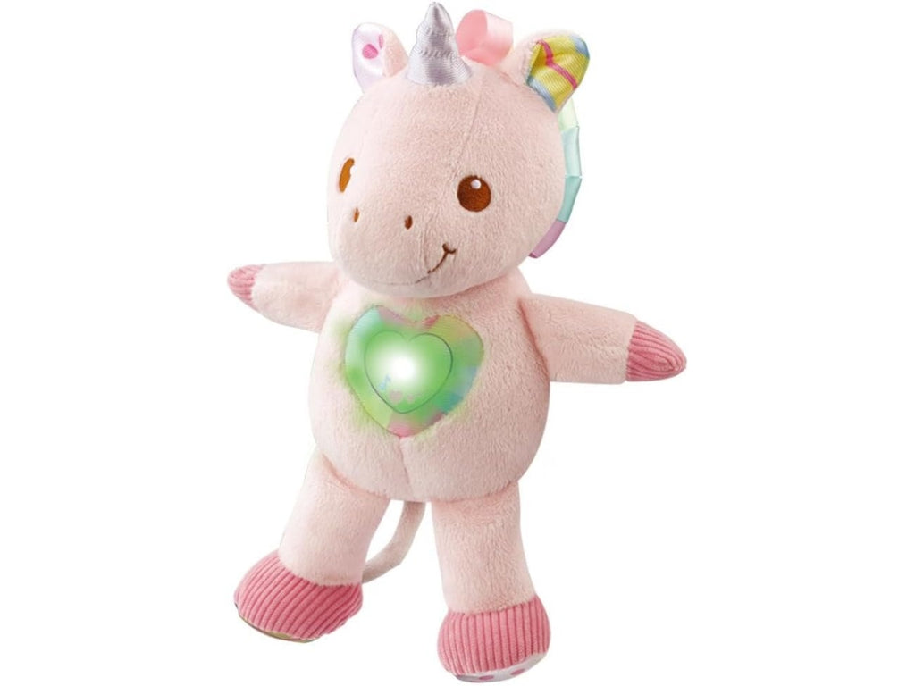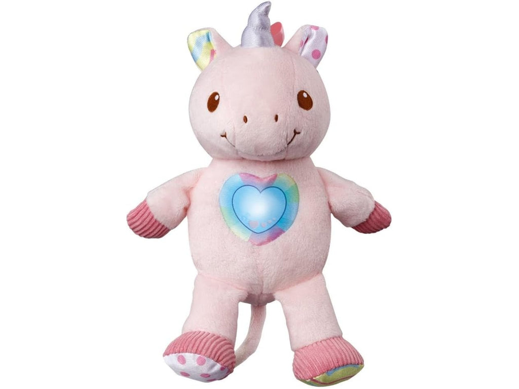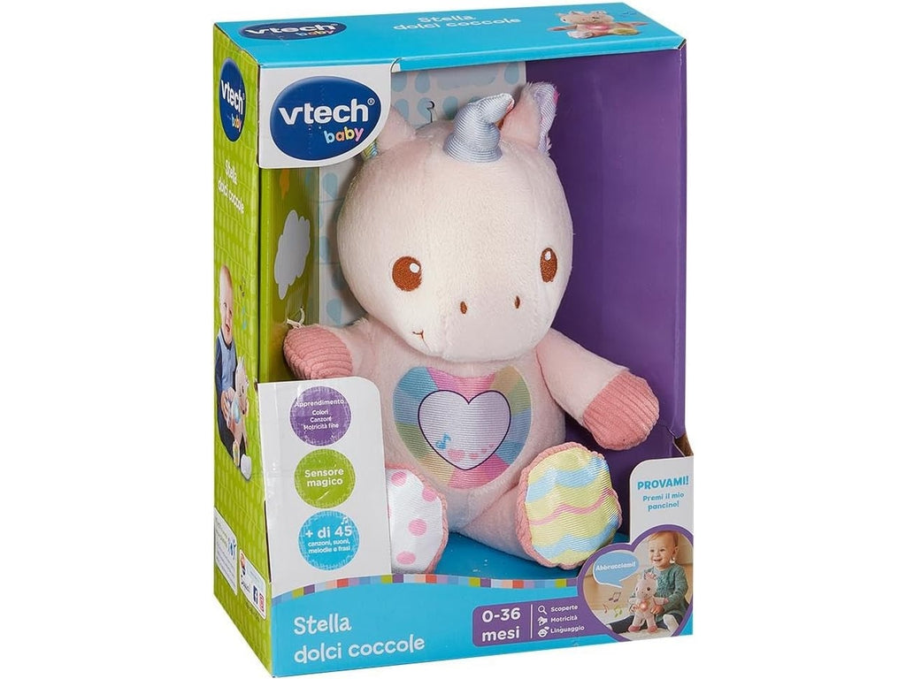 Scopri Stella, il dolce unicorno, ideale per coccole e divertimento dei più piccoli! Realizzato con materiali stimolanti come carta frusciante, tessuto satinato, velluto e peluche, Stella offre un'esperienza sensoriale unica. Il pulsante luminoso a forma di cuore sul pancino cambia colore mentre riproduce oltre 45 canzoni, melodie e frasi divertenti che intratterranno il tuo bambino in modo coinvolgente. Grazie al modulo elettronico removibile, puoi facilmente lavare la superficie del giocattolo mantenendolo sempre pulito e igienico. Inoltre, la regolazione del volume e lo spegnimento automatico garantiscono un utilizzo sicuro e pratico.