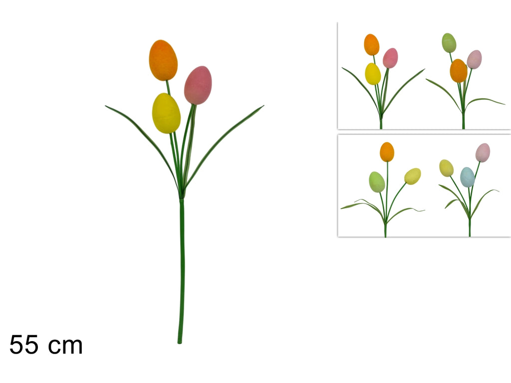 Stelo 55cm 3 uova colorate floccate in 4 assortimenti