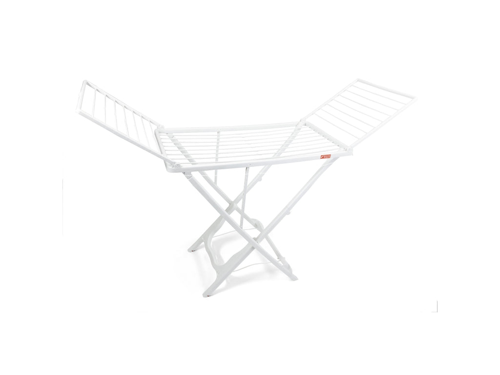 Stendibiancheria sostenibile, prodotto in resina riciclabile, ideale per asciugare lenzuola e vestiti sia in spazi interni che all'esterno. nelle giornate di sole puoi posizionare lo stendino sul balcone all'aria aperta oppure installarlo in casa magari in bagno. spostare il nostro stendino allungabile è molto facile e comodo: stendinout è realizzato in un materiale leggero come plastica, con una struttura estremamente solida e resistente. inoltre questi stendini sono dotati di rotelle per poterli muovere e spostare con agilità . lo spazio di stenditura è di ben 18 metri (lunghezza 170 cm, compresa di ali, e altezza 90 cm). à dotato di un semplice meccanismo di apertura comodo e veloce. à uno stendino salvaspazio, non è ingombrante e può essere riposto facilmente, poiché è piccolo, compatto e pieghevole. i fili spessi permettono di stendere i capi senza pieghe, così puoi stirare il tuo bucato in maniera più facile e veloce.