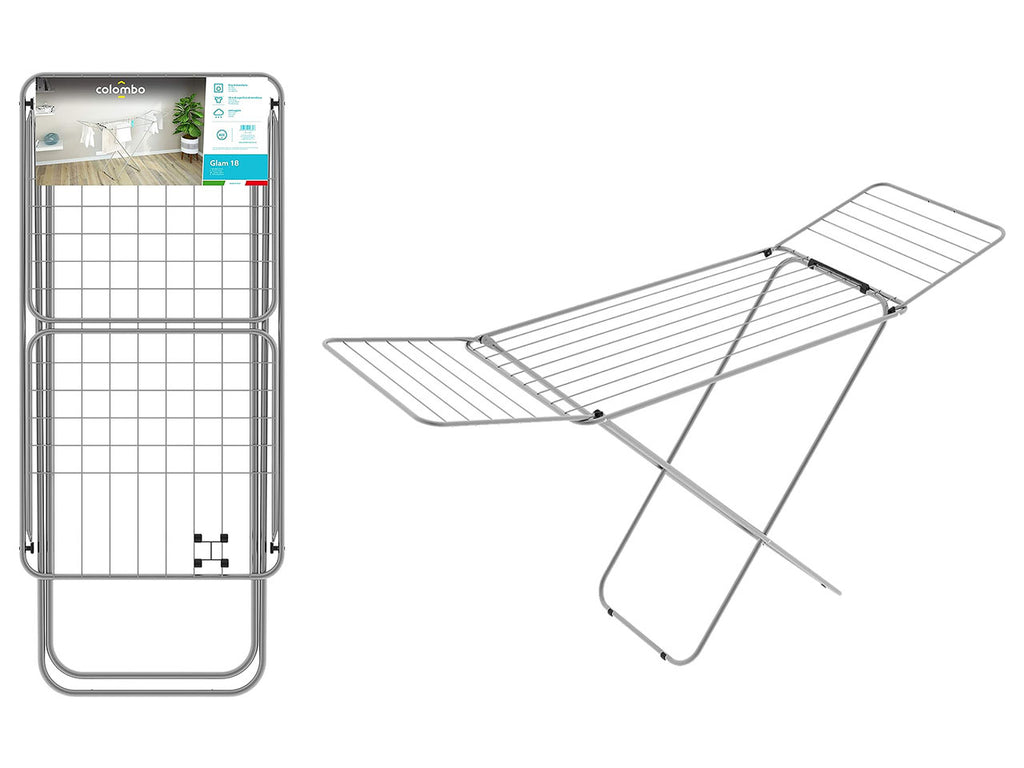 Colombo stendibiancheria glam 18 mt con piedini antiscivolo, struttura e fili in acciaio verniciato, 18 metri di spazio utile per stendere con esclusivo sistema di apertura e chiusura senza snodi lo rende più resistente e duraturo nel tempodimensioni da aperto (lxpxh) 180x56x103 cm.