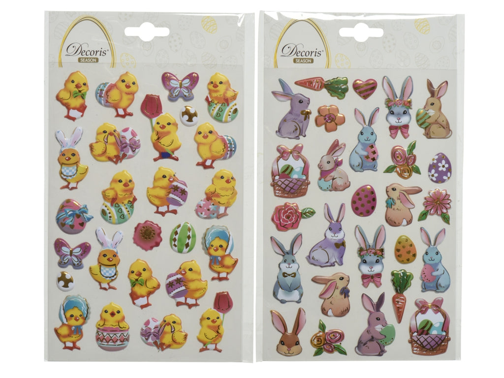 Ravviva la primavera con questi adesivi giocosi che creano un'atmosfera allegra su finestre, pareti o mobili. Questo set di Decoris contiene diversi coniglietti e pulcini pasquali, ognuno con una forma affascinante e vivaci disegni multicolori che catturano immediatamente l'attenzione. Realizzati in plastica robusta, gli adesivi sono leggeri e facili da applicare, ideali per aggiungere un tocco discreto a qualsiasi interno. Il loro aspetto fresco e festoso si adatta perfettamente a un accogliente arredamento primaverile o pasquale.