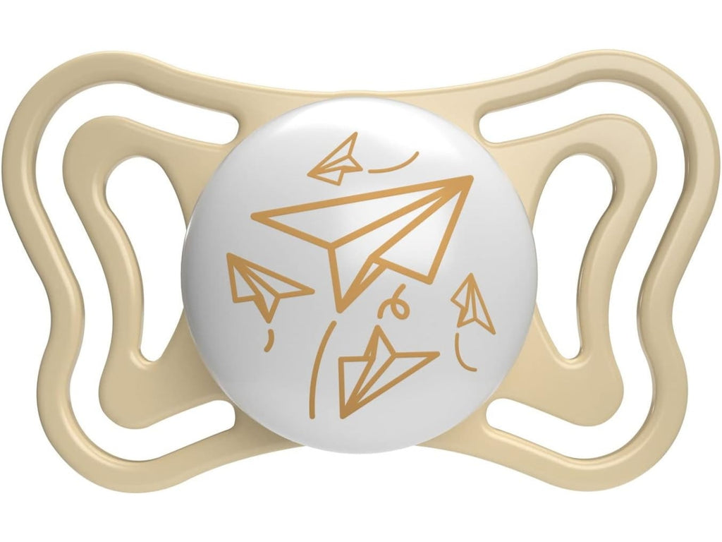Questo succhietto è progettato per favorire il corretto sviluppo della bocca. Lascia spazio alla naturale posizione della lingua e distribuisce la pressione sul palato in modo uniforme, contribuendo a un sano sviluppo orale.