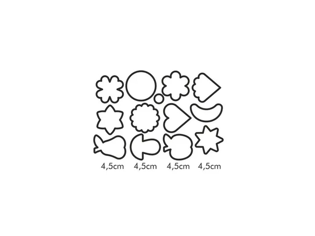 Un set composto da 13 diverse sagome per creare biscotti dalle forme tradizionali. Il set è dotato di un anello per tenere le formine in ordine. Prodotto in plastica resistente di alta qualità .