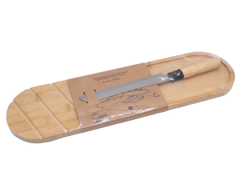 Tagliere legno per pane 50x14cm con coltello