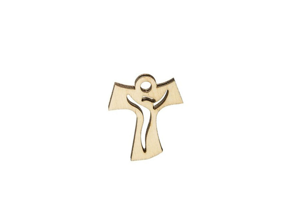 Croce tao intagliato in legno natuale da 4 cm.