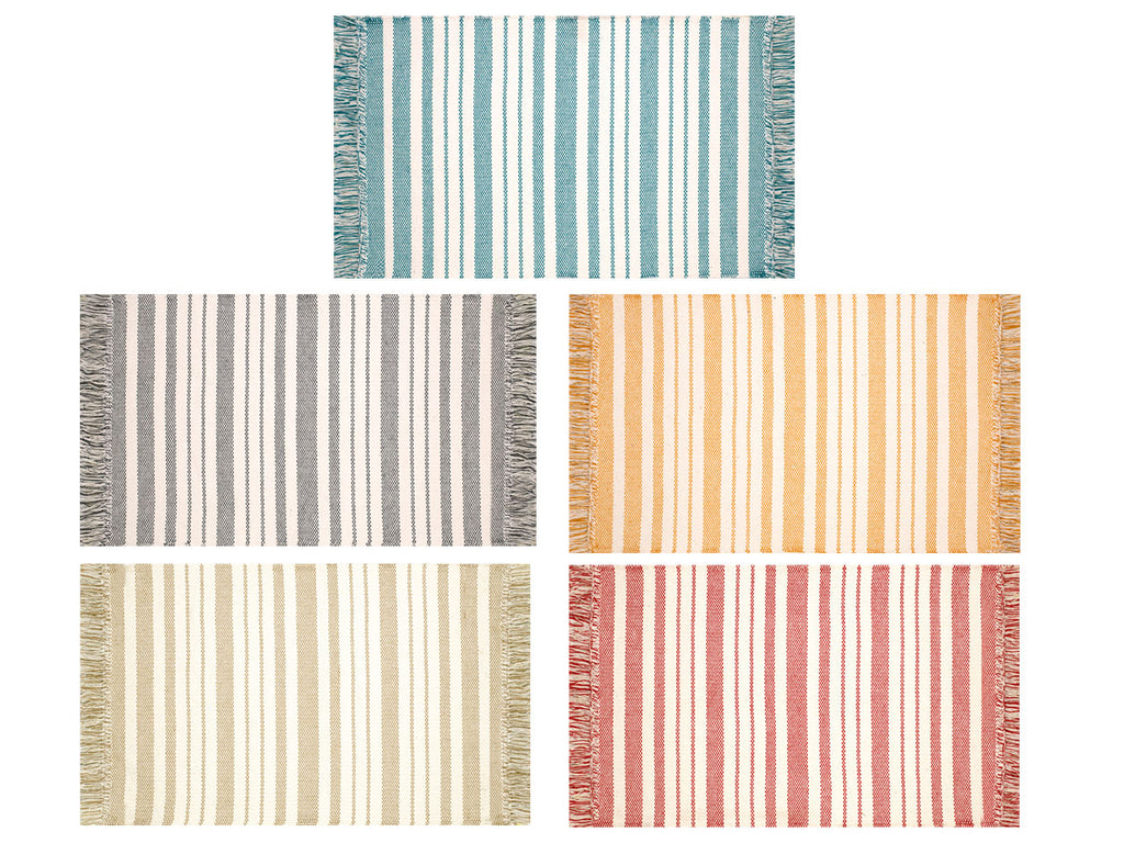 Pratico e versatile tappeto in cotone lavabile in lavatrice, facile da abbinare, realizzato a telaio manuale, senza fondo gommato. Disponibile in diversi colori di tendenza e in 3 misure. Scegli quello più adatto alla tua casa ed il gioco è fatto. Alcune idee di utilizzo: tappeto per la cucina, per il bagno, la lavanderia, il corridoio. Perfetto anche come piccolo tappeto scendiletto o come tappetino supplementare allâingresso. Tessitura piatta, spessore 4 mm. Lavare a mano o in lavatrice a 30°, non candeggiare, non stirare, no centrifuga.