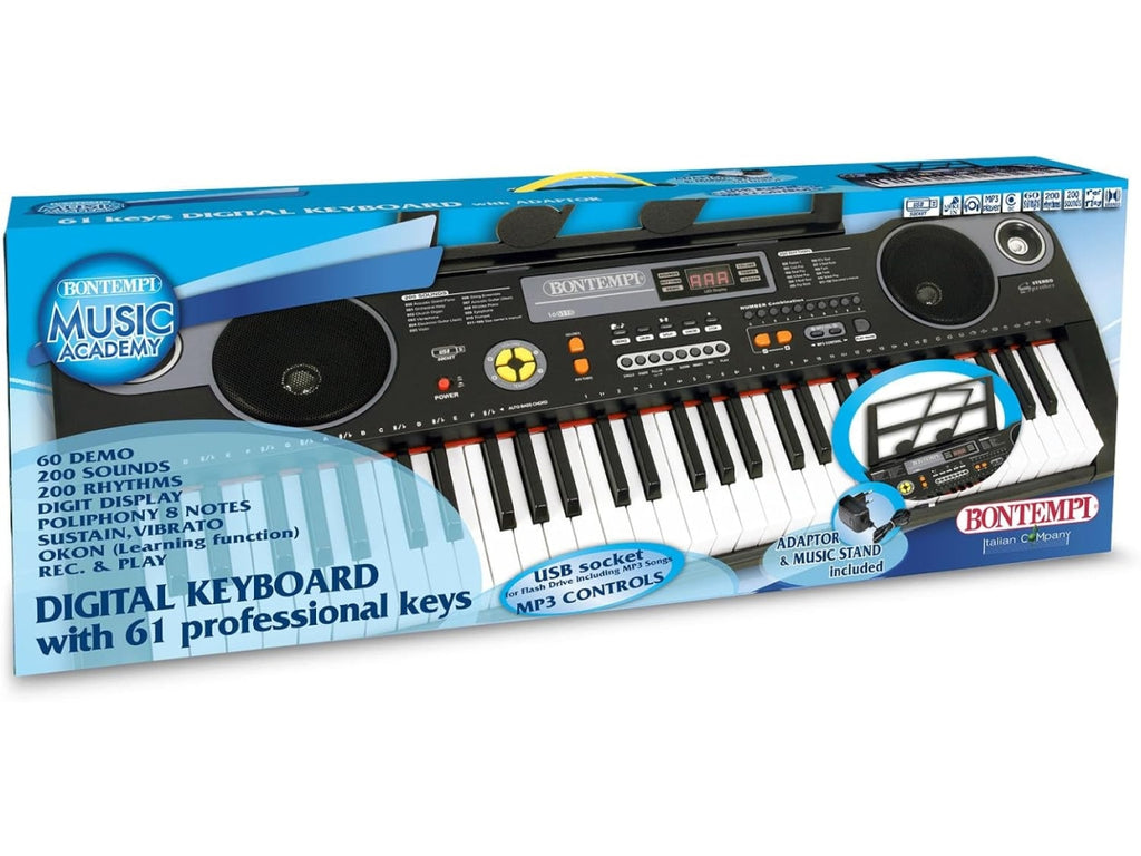La tastiera digitale a 61 tasti offre una straordinaria versatilità musicale, permettendo di esplorare un’ampia gamma di possibilità espressive. Grazie alla connessione USB, può essere facilmente collegata a diversi dispositivi per ampliare la creatività senza limiti. L’alimentazione tramite adattatore di rete garantisce una stabilità costante e performance senza interruzioni, mentre il design intuitivo, caratterizzato da controlli chiari e immediatamente accessibili, rende l’esperienza d’uso semplice e fluida. I suoni realistici e ricchi completano il tutto, offrendo un’esperienza sonora superiore e un’armonia perfetta.