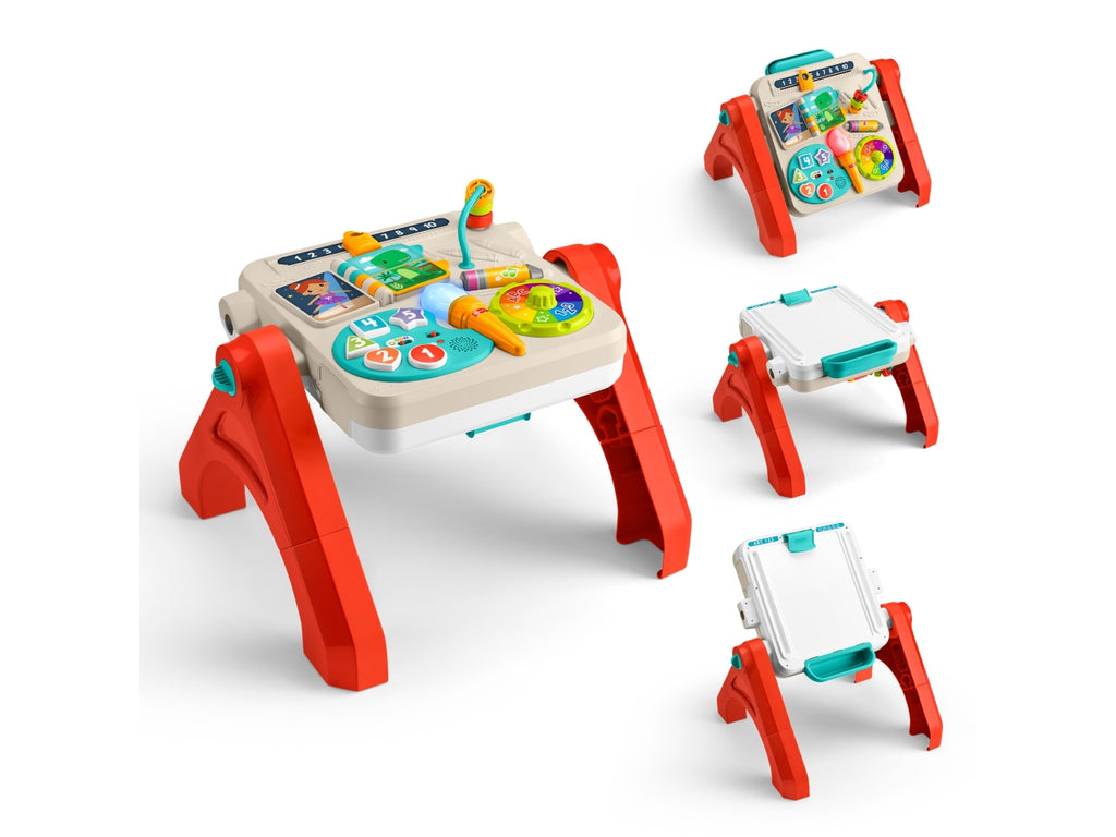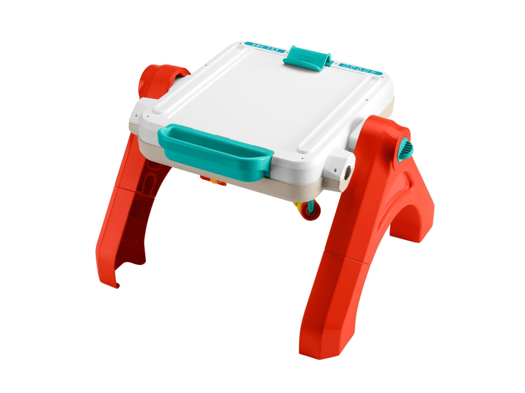 Il Tavolino Attività 4 in 1 Laugh & Learn di Fisher-Price fa sì che i più piccoli possano crescere giocando, imparando e creando! Questo giocattolo interattivo per l'apprendimento si trasforma facilmente da una sedia a un pannello interattivo e tavolo da attività per bambini fino a un tavolo da gioco e cavalletto per dipingere, così le opportunità di gioco saranno infinite. Il pannello interattivo offre una varietà di attività pratiche da esplorare, oltre a 3 livelli di apprendimento Smart Stages con oltre 135 canzoni, suoni e frasi. Basta girare la parte superiore per svelare il pannello del cavalletto con clip e vano portaoggetti interno per conservare tutti i materiali del tuo piccolo artista! Usa il pulsante a forma di globo per selezionare la lingua: italiano, spagnolo castigliano, portoghese o inglese. Richiede 3 pile formato stilo AA (non incluse).